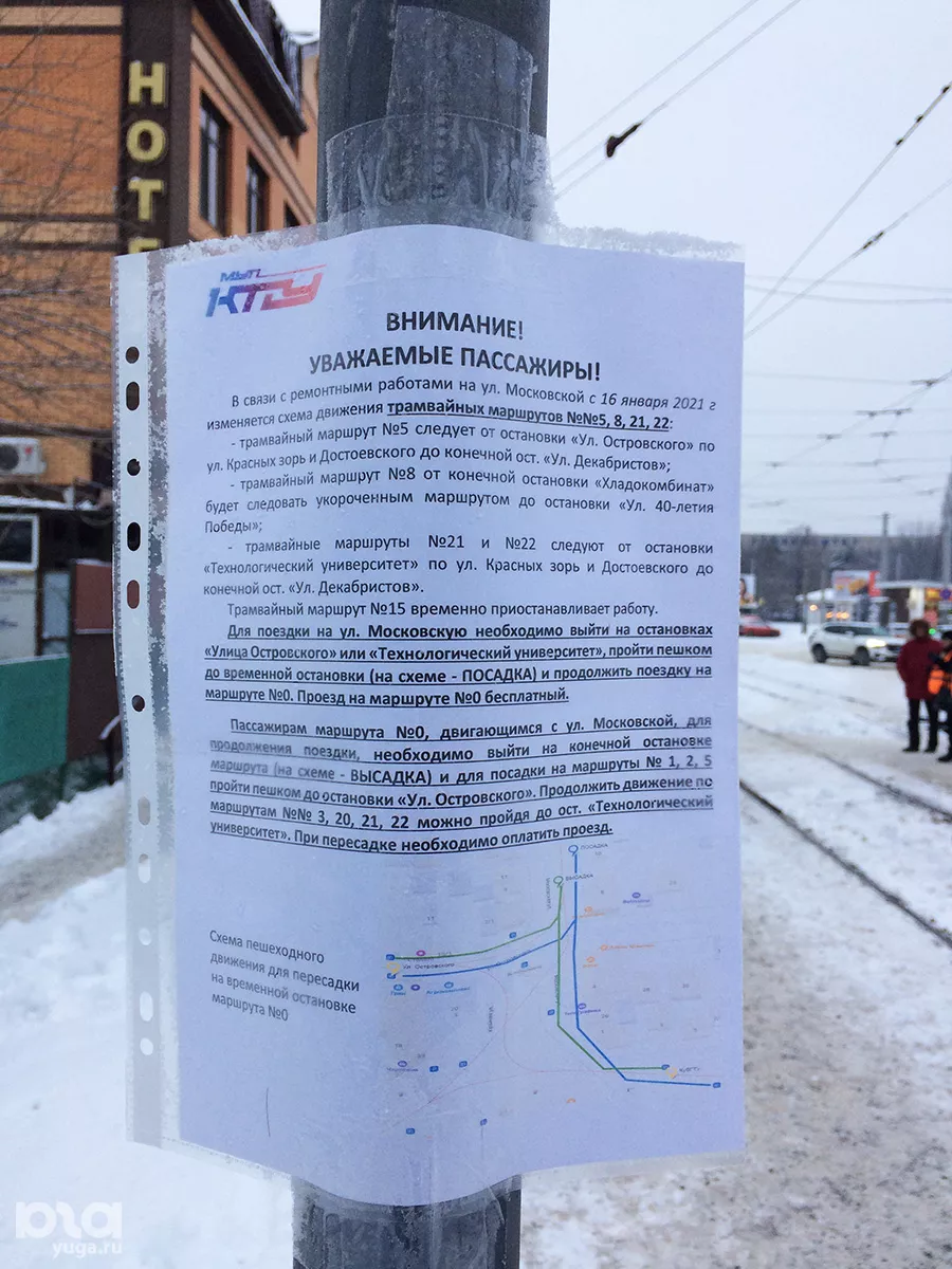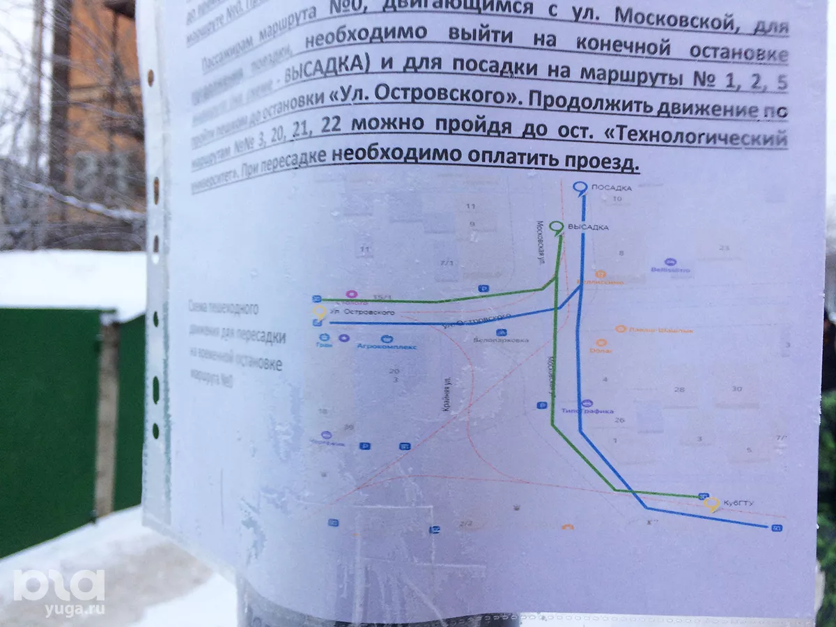 На всех остановках челночного маршрута по Московской развешаны информационные объявления (распечатки на листах А4 в целлофановых файликах).