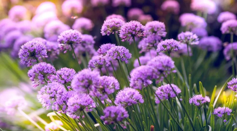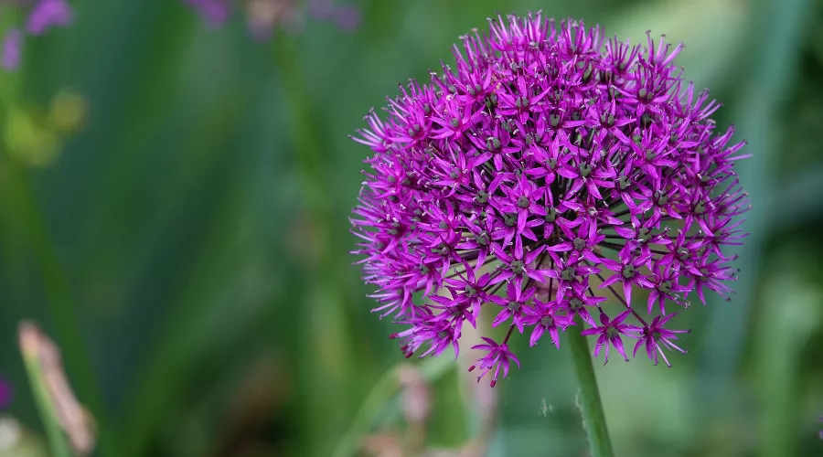 Декоративный лук. Также известен под названием «аллиум», что в переводе с латыни означает, как ни странно, «чеснок». В биологический род входит более 400 видов, среди которых примерно поровну съедобных и декоративных. Некоторые виды могут достигать в высоту полтора метра, но обычно лук дорастает примерно до 40 см. Цвести начинает в мае, хотя некоторые виды — только в августе. Цветы бывают самых разнообразных окрасок — от белого до фиолетового. Главная отличительная примета — длинная цветоножка, оканчивающаяся соцветием в форме пышного шара, реже — полусферического зонтика. Аромат у растения тоже специфичен, под стать вкусу.