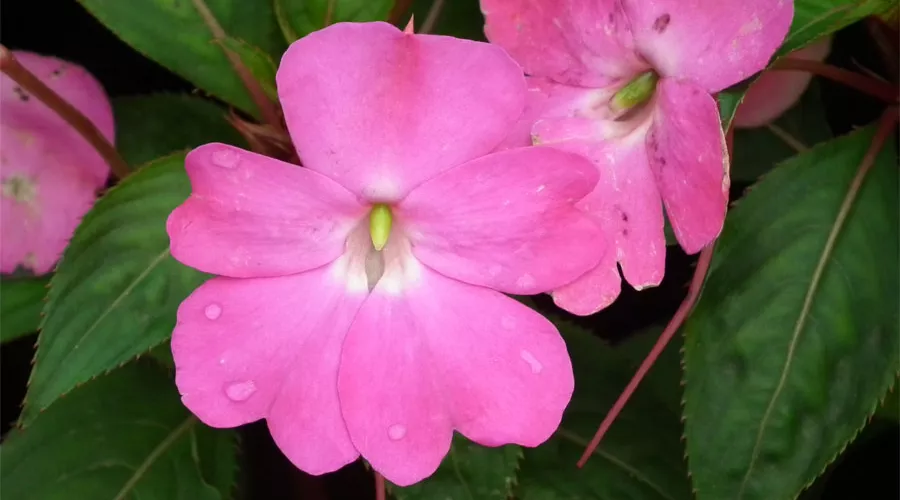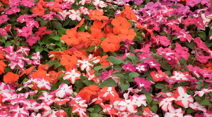 Бальзамин садовый. Этот невысокий (25-50 см) кустарник примечателен своим забавным альтернативным названием — садовники старшего поколения называют его «ванька мокрый» из-за того, что на его листве постоянно собираются капли влаги.