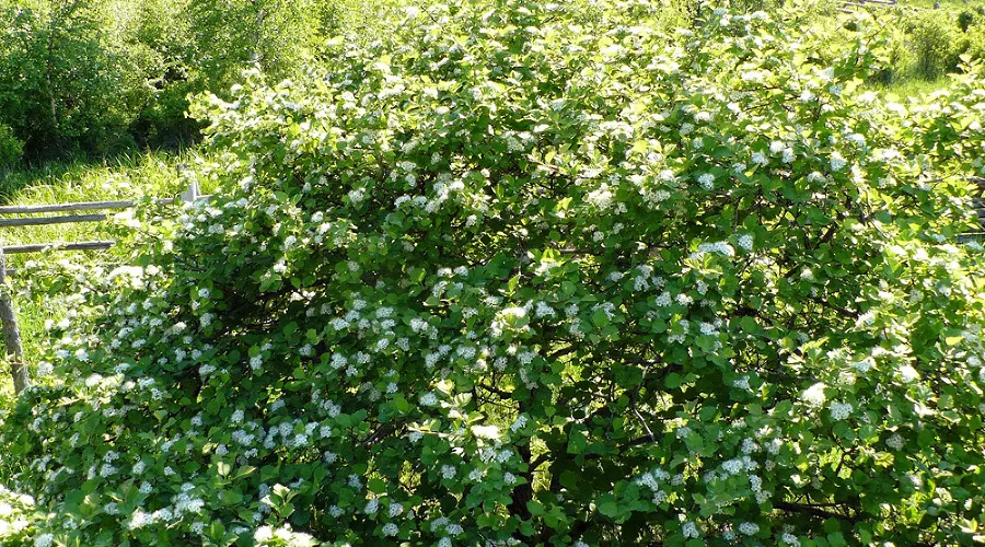 Цвести боярышник начинает во второй половине мая. Его белые или светло-розовые цветки невелики размером (1,5 см в диаметре), зато собраны в плотные соцветия-щитки, которые создают впечатление, что всё растение покрыто пышным цветущим ковром. В сентябре созревают плоды красного или красно-коричневого цвета, похожие на маленькие яблочки.
