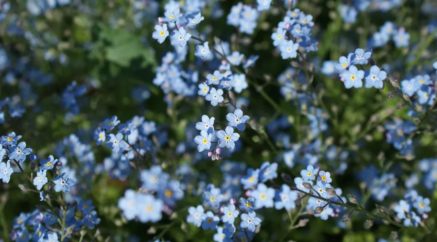 Незабудка. В большинстве европейских языков название этого цветка имеет такой же смысл, как в русском, при этом древние греки называли его «миосотис» — «мышиное ухо». Растет в основном на полянах, но некоторые виды встречаются на берегах водоемов, в том числе болот. Цвести обычно начинает в середине мая.