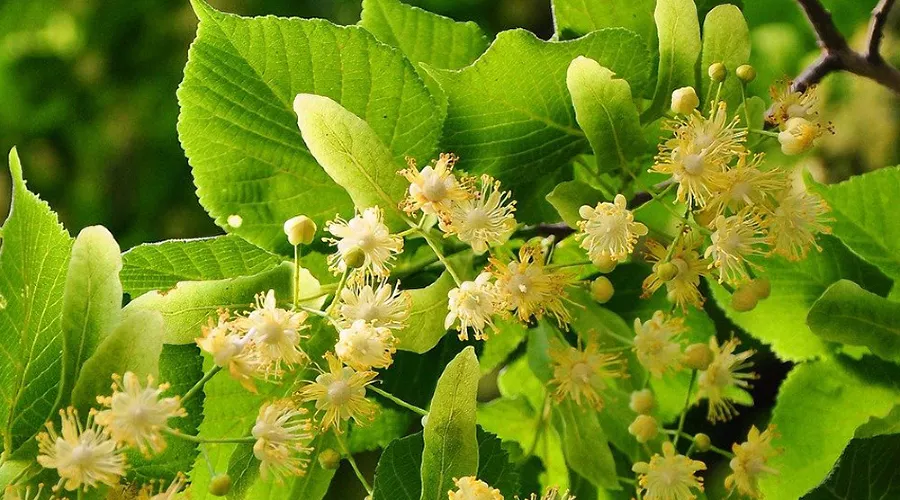 Цветки у липы мелкие (1-1,5 см в диаметре), желтовато-белые, собраны в поникающие соцветия-щитки по 3-11 штук. Липовый цвет применяют в парфюмерной промышленности, для производства ликеров и, конечно, в медицине: при простудных заболеваниях, туберкулезе, цистите, ревматизме, мигрени, атеросклерозе и сахарном диабете.