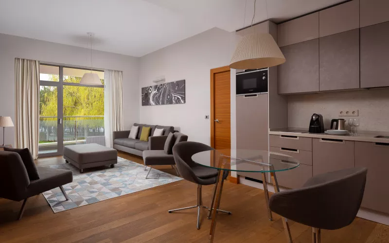 Это Azimut Отель FREESTYLE, Valset Sport и Valset Home. В еще двух — Valset Center и Valset Premium от Azimut Роза Хутор 3* — сейчас полным ходом идет реновация. Их планируют открыть к зимнему горнолыжному сезону.