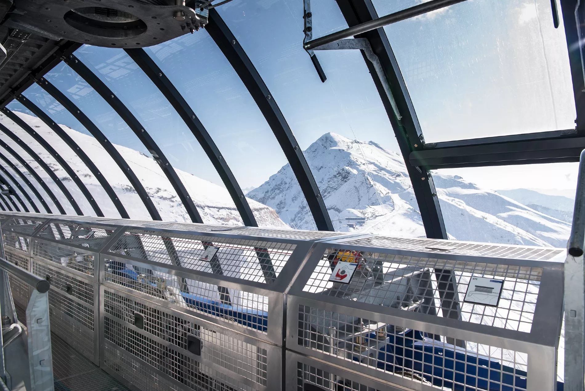 В прошлом году на южном склоне курорта открыли первую в России канатную дорогу системы D-line с десятиместными кабинами. Она хороша не только большей вместимостью, но и простотой обслуживания. Чтобы заменить ремень конвейера (механизм, который разгоняет и тормозит кабины), старую канатку нужно было остановить и четыре часа работать в экстренном режиме. В новых составах этот ремень двойной — если оборвется одна половина, если ремень ослаб и пробуксовывает, его можно натянуть за минуту. Контролировать состояние каната можно онлайн — он проходит через систему, подобную рентгену. Также важно, что зажим кабины принципиально отличается большим запасом прочности и количества циклов.