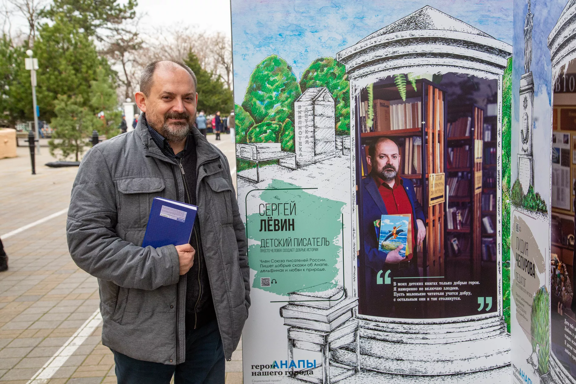 На Театральной площади открылась интерактивная выставка «Герои нашего города». Ее герои — анапчане самых разных профессий, которые делают город лучше. Среди них — пожарные и доноры, спортсмены и волонтеры, экологи и педагоги, историки и писатели.
