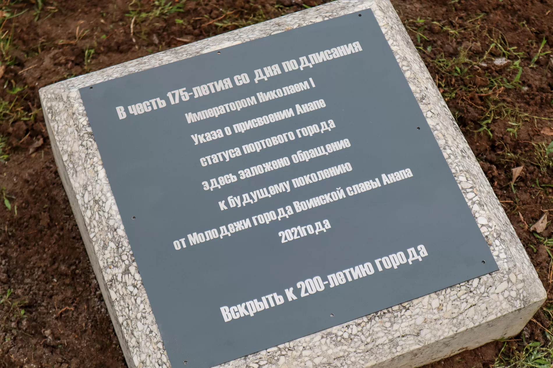 Возле стелы воинской славы горожане заложили «капсулу времени» с фото и видео в печатном и электронном виде, а также 175 писем от анапских студентов и школьников. Открыть ее должны в 2046 году — в честь 200-летия городского статуса.