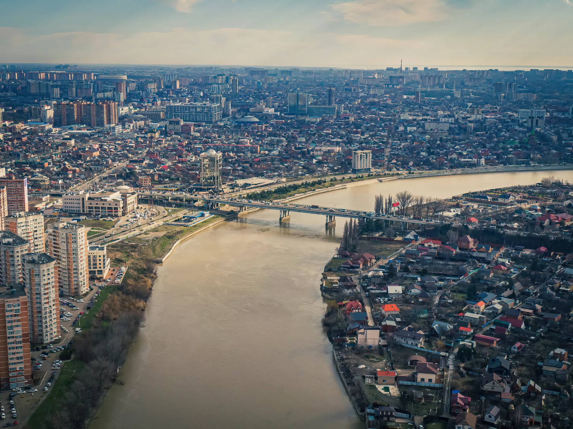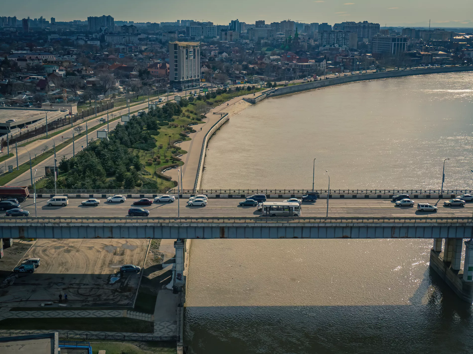 Юга.ру совершили аэрофотополет над рекой Кубанью от Тургеневского моста до Юбилейного микрорайона. Мы посмотрели, где именно мэрия Краснодара планирует в течение четырех ближайших лет построить 3,8 км новой набережной, — и готовы показать вам.
