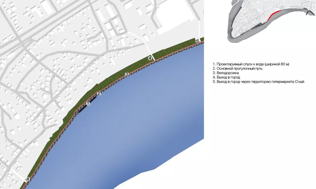 Когда ни с какими частными домовладельцами судиться за прибрежную полосу уже не нужно, можно браться за детальный проект. И такой проект уже разработан — единая набережная от парка 30-летия Победы (в народе — Затона) до Рождественского парка (за храмом в ЮМР).