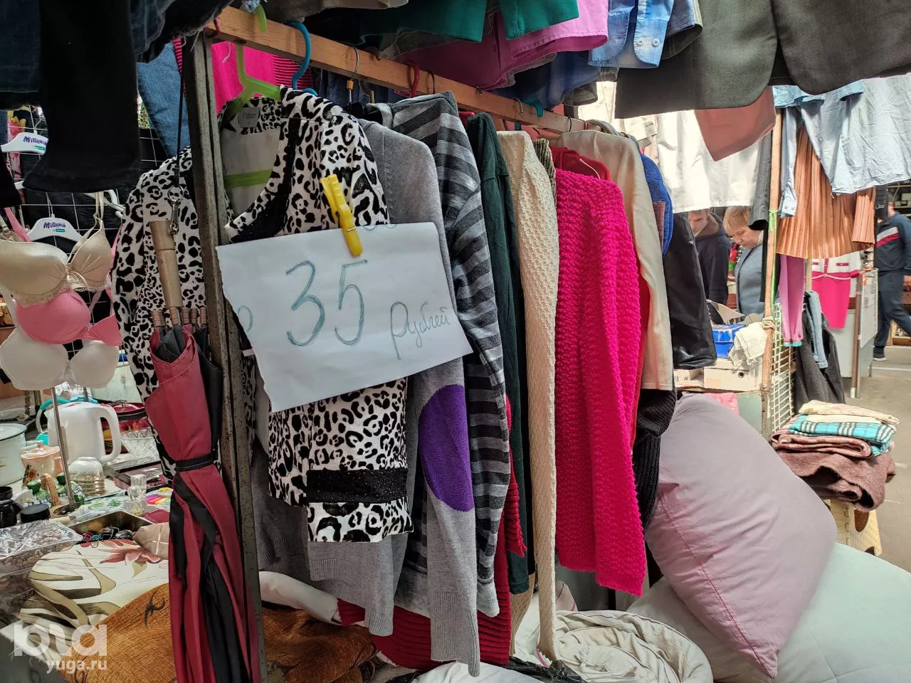 Елена говорит, аренда на рынке дорогая. За место шириной 80 см — 2,5 тыс. рублей в месяц. По ее словам, здесь много ворованных вещей, их привозят целыми мешками. Есть тут и перекупщики.