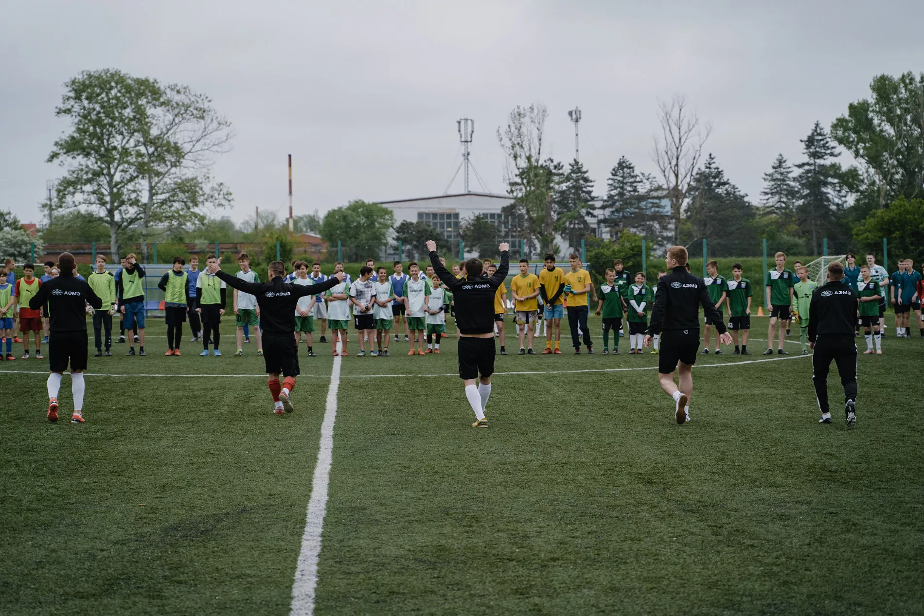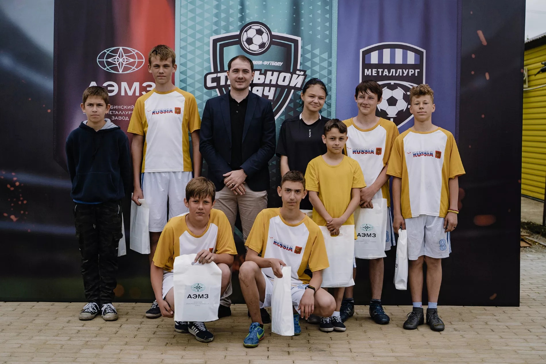 Этой весной у руководства АЭМЗ родилась идея распространять свою активную жизненную позицию не только на сотрудников, но и за пределы завода. И начать решили с молодежи — школьников Абинского района пригласили участвовать в турнире по мини-футболу «Стальной мяч». Идею поддержали в районной администрации — с организацией помогли управление образования и молодежной политики и отдел по физической культуре и спорту. Датой проведения выбрали 6 апреля — Международный день спорта, однако из-за капризов погоды турнир пришлось перенести на 30-е.