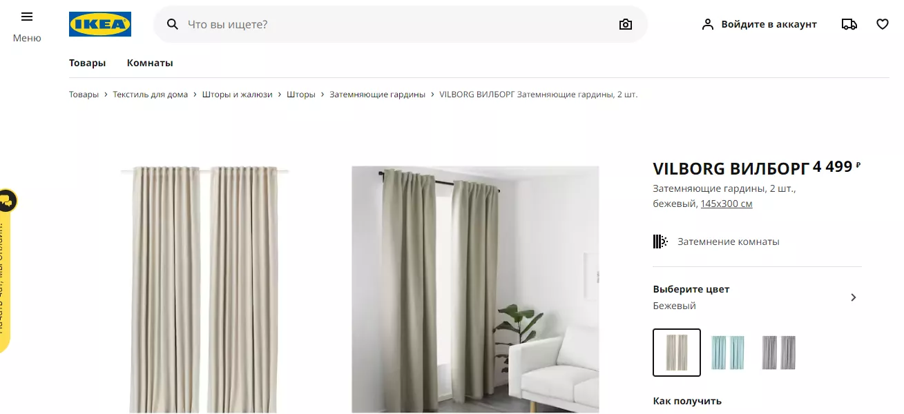 Еще одна знаменитая позиция в ассортименте товаров ИКЕА — затемняющие гардины ВИЛБОРГ. Раньше их можно было приобрести за 3 тыс. 999 рублей. Сегодня на сайте финской компании они стоят 4 тыс. 499 рублей. На «Доставкин» — 3 тыс. 999 рублей, такая же стоимость при заказе на del-i-very.