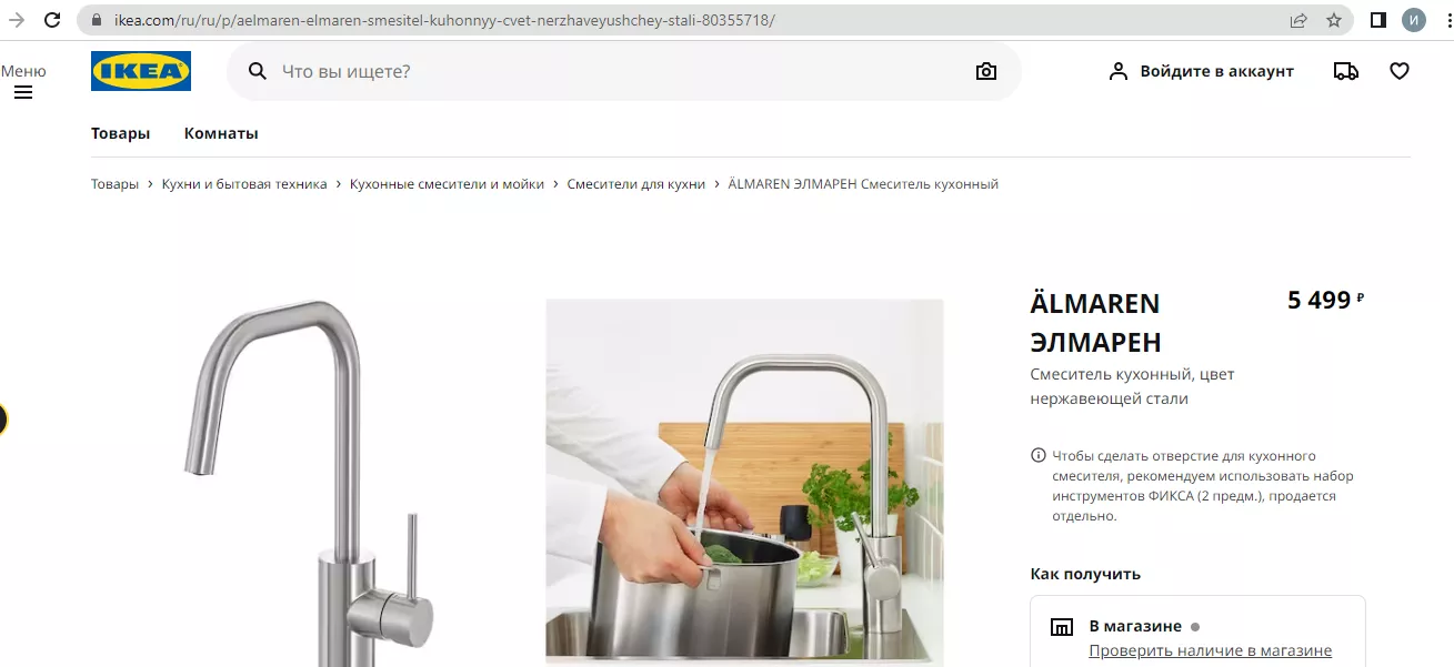 Смеситель из нержавеющей стали ЭЛМАРЕН можно было приобрести за 4 тыс. 999 рублей. Сеегодня его цена на сайтах ИКЕА и «Доставкин» одинаковая — 5 тыс. 499 рублей.