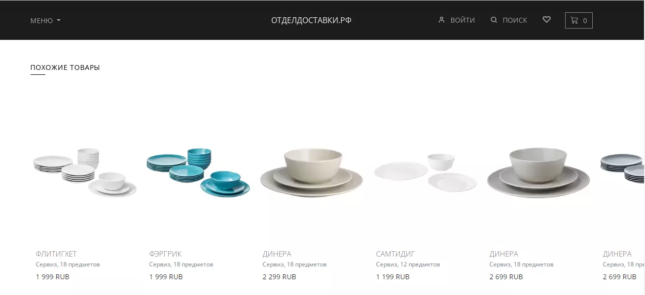 Матовый или глянцевый сервиз ДИНЕРА из 18 предметов (тарелки разных размеров) стоил 1 тыс. 699 рублей. На сайте отделдоставки.рф его цена варьируется от 2 тыс. 299 до 2 тыс. 699 рублей. На «ИКЕА zakaz» можно взять за 2 тыс. 699 рублей, такая же цена у сервиса «Доставкин».