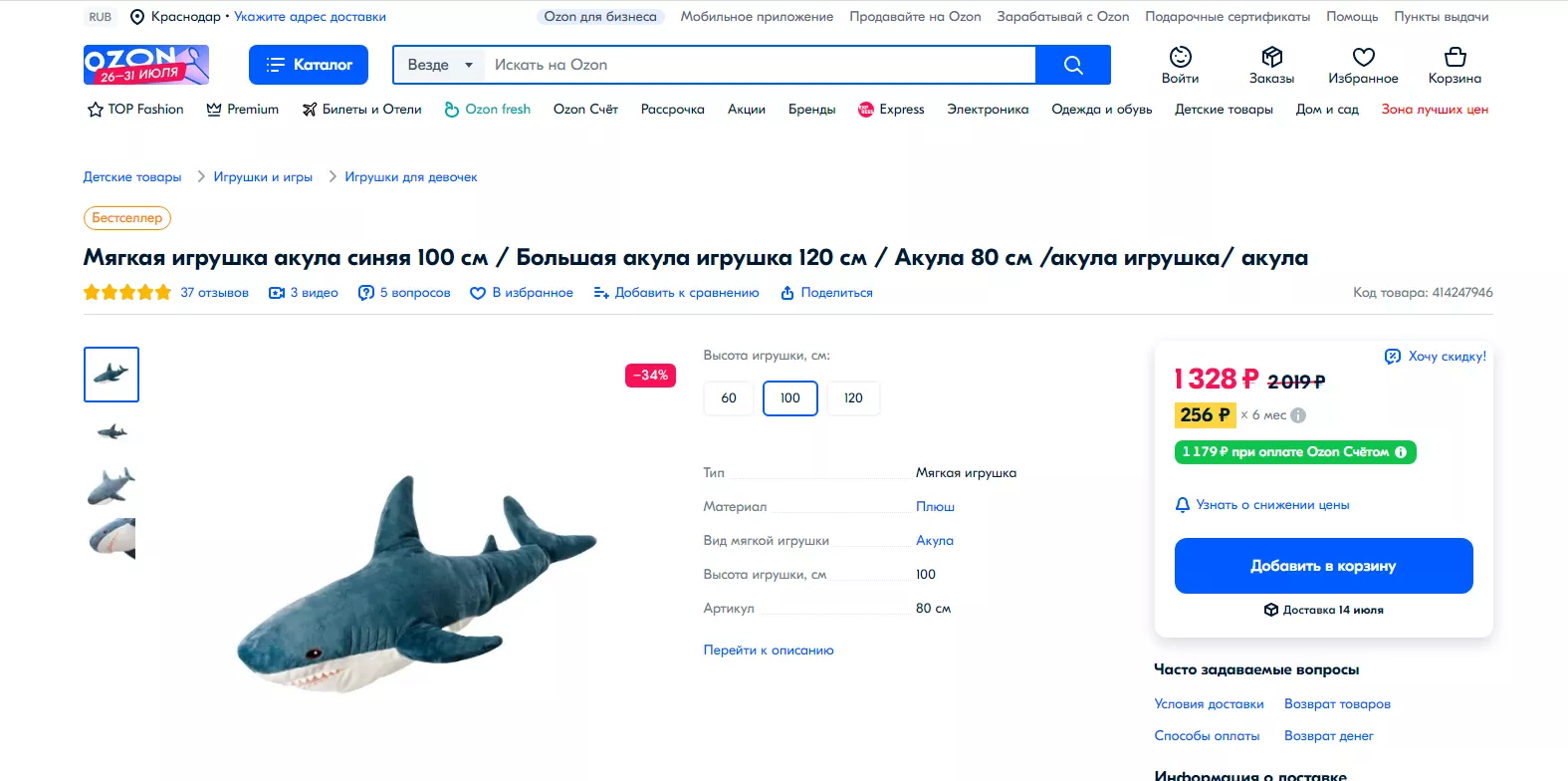 Wildberries предлагает приобрести подушку аж за 999 рублей, Ozon — за 926 рублей.
