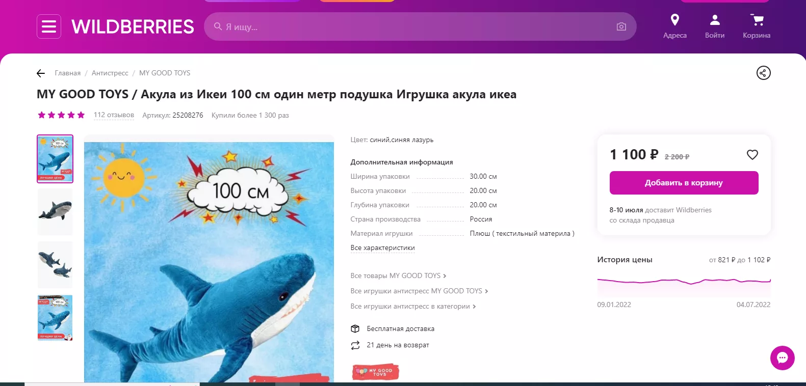 Культовая вещь ИКЕА — плюшевая акула БЛОХЭЙ. Она давно стала одним из символов финской компании. В начале марта перед закрытием магазинов сети она (игрушка размером 100 см) стоила 1 тыс. 499 рублей. На сайте ИКЕА цена осталась прежней, как и на «Доставкин». На «ЯндексМаркет» сегодня акулу можно купить за 1 тыс. 90 рублей, на Ozon — за 1 тыс. 328 рублей, на Wildberries — за 1 тыс. 100 рублей. Цена на Avito доходит до нескольких миллионов.