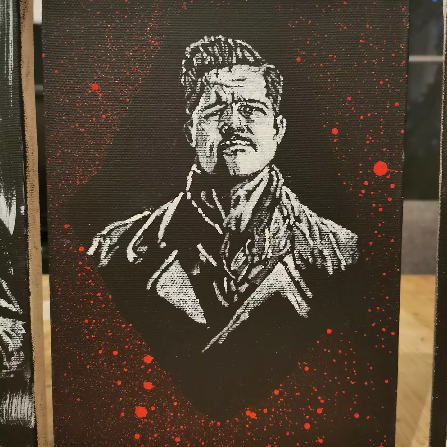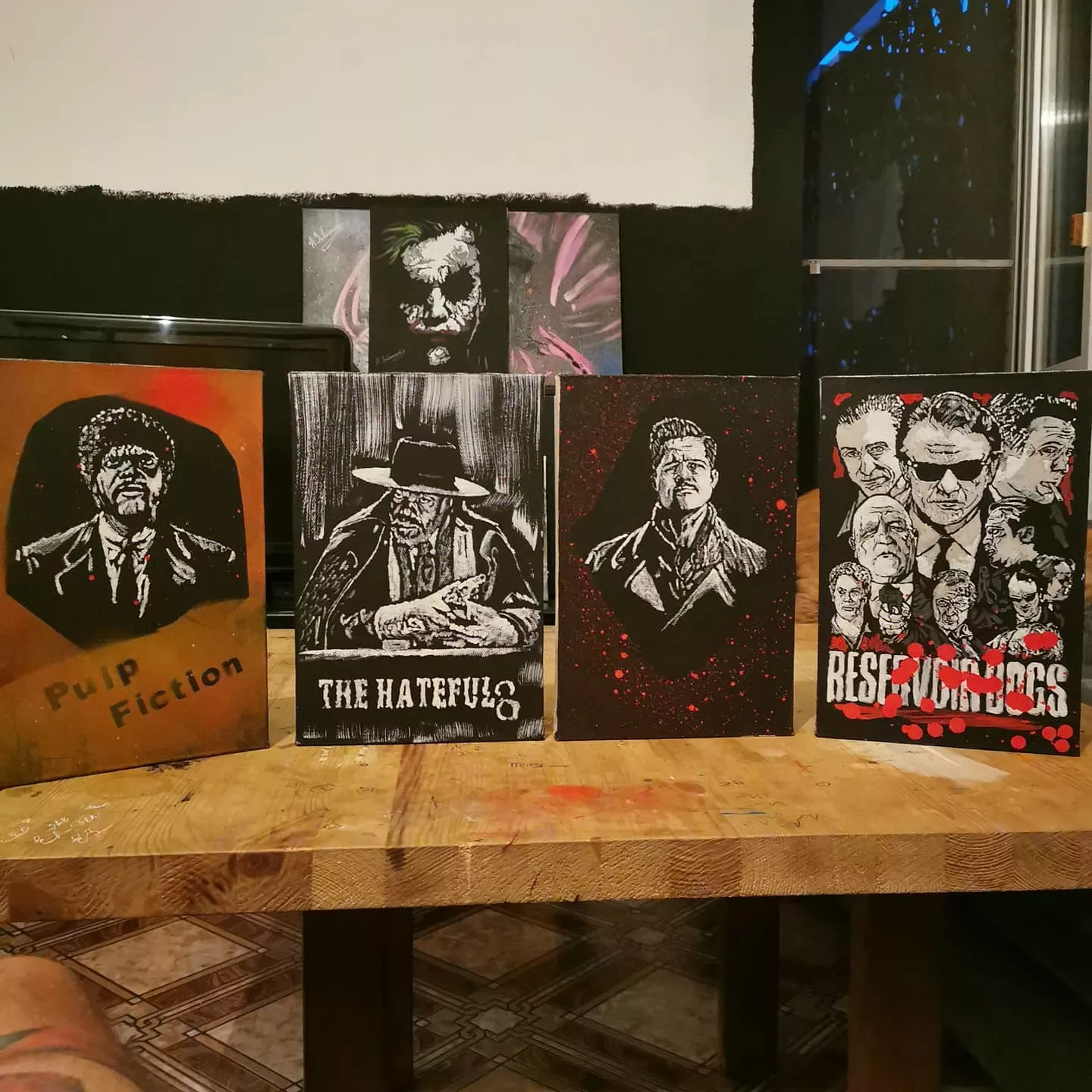 Начинал Алексей с абстракции — просто разбрызгивал краски и смотрел, как и с какими переходами они лягут друг на друга. Сейчас в основном он рисует портреты. Герои работ очень разные: Квентин Тарантино, Федор Емельяненко, девушка на пилоне, Аль Пачино, Человек-паук, Сергей Бодров-младший, Владимир Маяковский, Сергей Есенин.