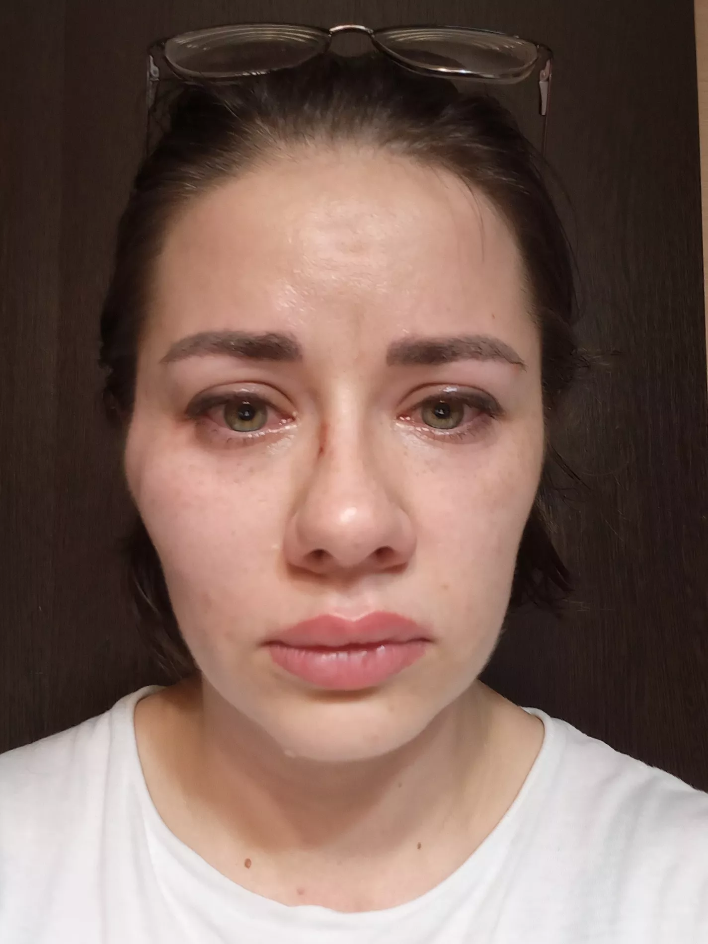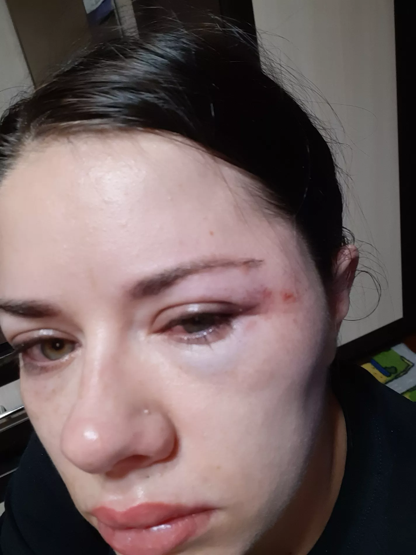 На фотографиях и видеозаписях, которые сделала Надежда, видно, как сильно опухло ее лицо от ударов, как неровно держатся очки. Но в новогодние праздники зафиксировать это документально не удалось: работала не каждая больница, женщину направляли из одного отделения в другое, а в платных клиниках побои не фиксируют. В середине месяца по заявлению Надежды пришёл участковый, и под давлением мужа она написала отказную.