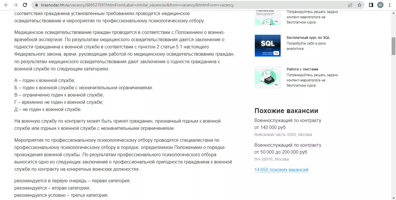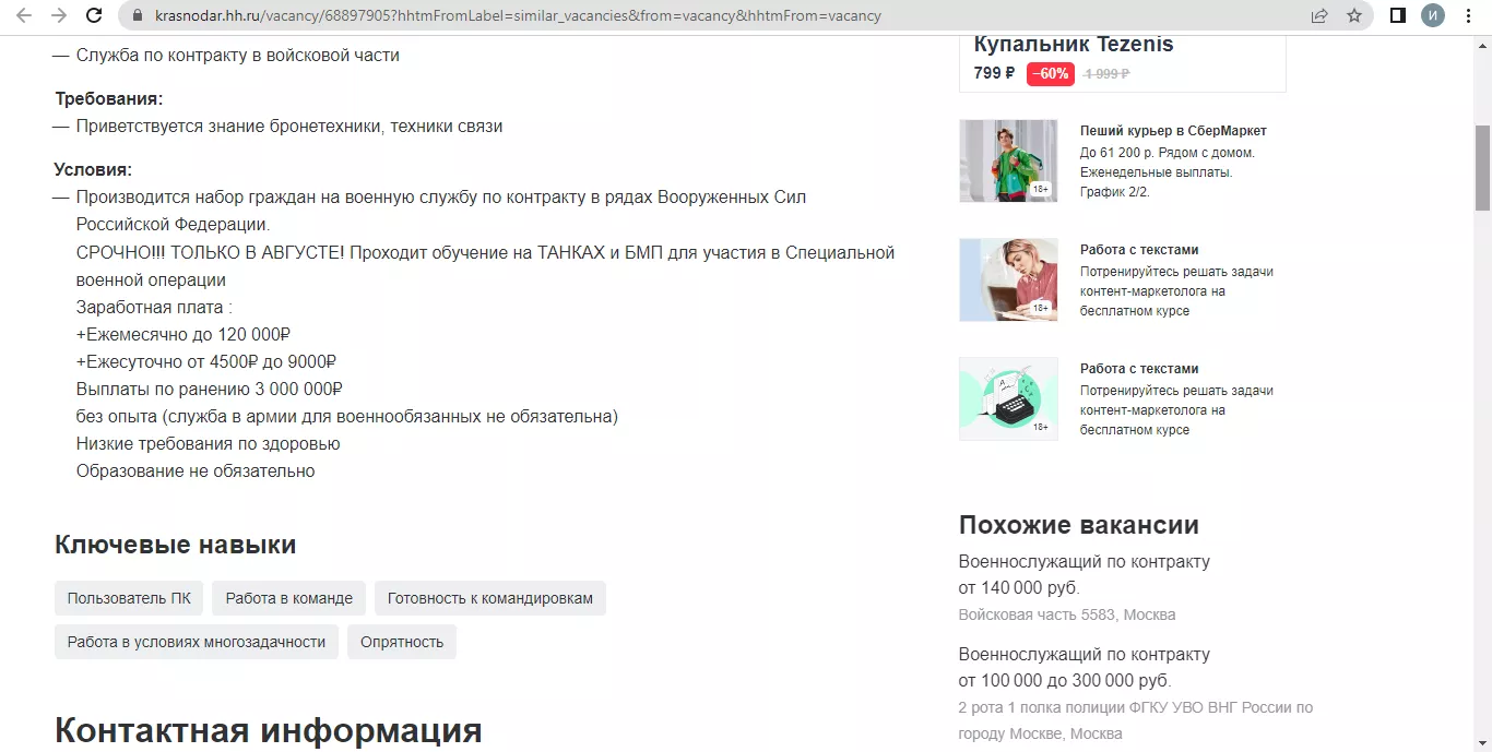 На сайте по поиску работы hh.ru зарплаты скромнее: военным предлагают от 25 тыс. рублей до 200 тыс. руб.