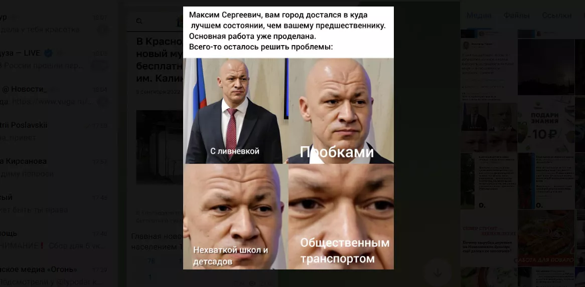 Мне сложно сказать, чем один край отличается от другого в этом плане. Я видел свои переработанные шутки относительно других регионов. Юмор более или менее универсальный. Замени Краснодар на Хабаровск — и зайдёт. Другим регионам, конечно, не так повезло с Музыкальным, как нам, но я не удивлюсь, что в городах найдётся другая подобная жопа