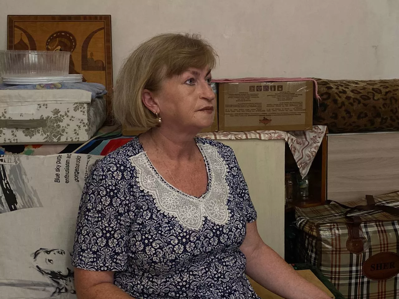 Ирине Ганьшиной 56 лет. Невысокая, светлые волосы аккуратно уложены и заправлены за уши. На ней синее платье с белым узором и кружевным воротником. Голос у женщины звонкий и молодой: «Я — Ирочка», — представляется она.