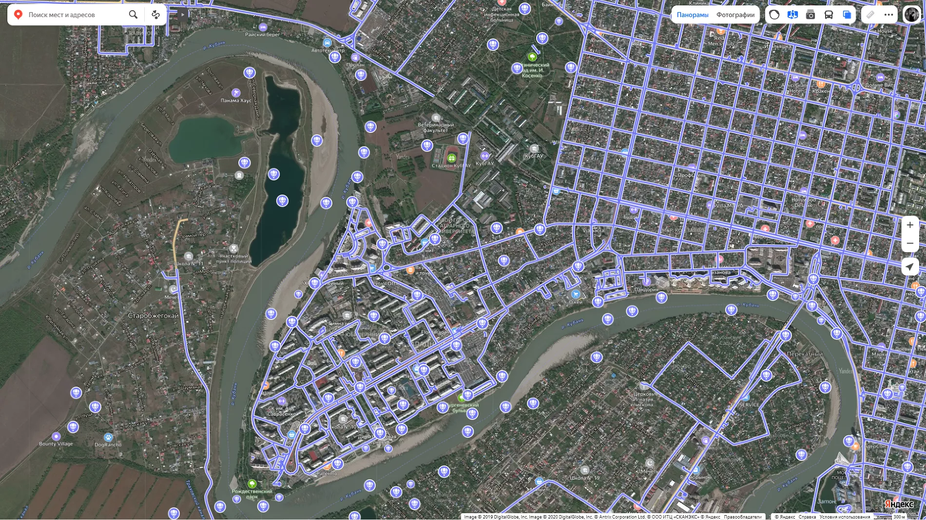 «Яндекс.карты» публикуют сферические панорамы городов РФ с 2013 года, в Краснодаре — с 2018-го. Сейчас над Краснодаром не менее 150 панорам в основном 2020 и 2022 годов. Больше всего снимков снято над Юбилейным микрорайоном и вдоль городского русла Кубани. Меньше всего — в Карасунском округе. Как запрет коптеров сказался на создании новых панорам или обновлении старых, пресс-служба сервиса не ответила.