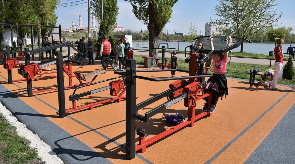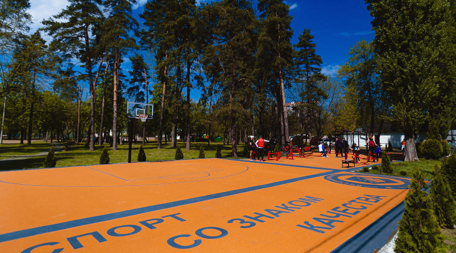Большую спортплощадку площадью почти 600 кв. метров с волейбольной, баскетбольной зонами и семью силовыми тренажерами открыли весной 2021-го в парке «Солнечный остров» по инициативе Амосова.