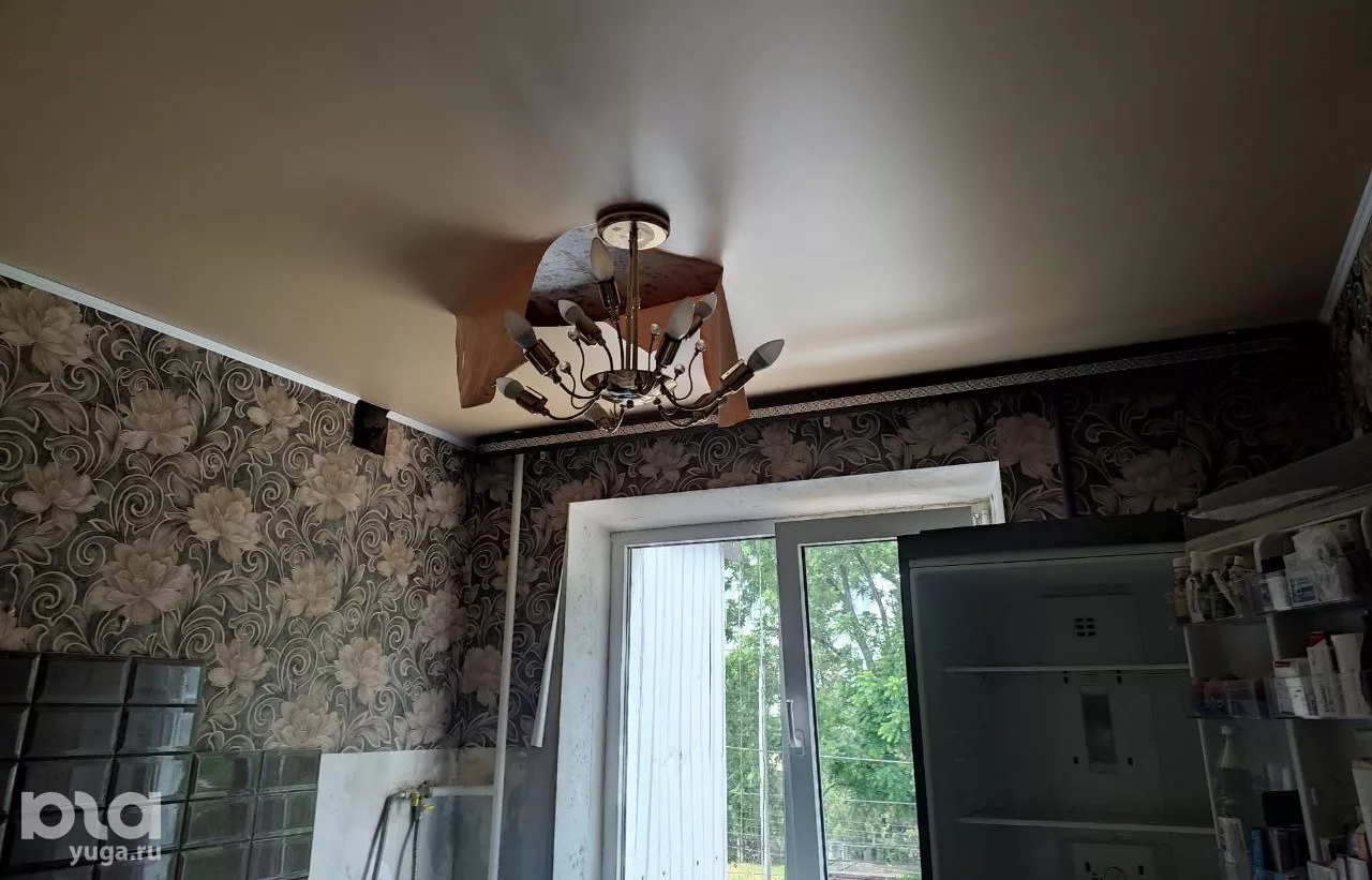 На стене болтается испепеленный кондиционер, свисают куски бывшего натяжного потолка, пыльный шкаф опирается на соседнюю стену, открытый холодильник лежит на полу, керамическая плитка частично разрушилась, частично потрескалась, линолеум пошел волнами. С потолка льется вода, поскольку между балками, из которых делали свод, появились огромные зазоры.