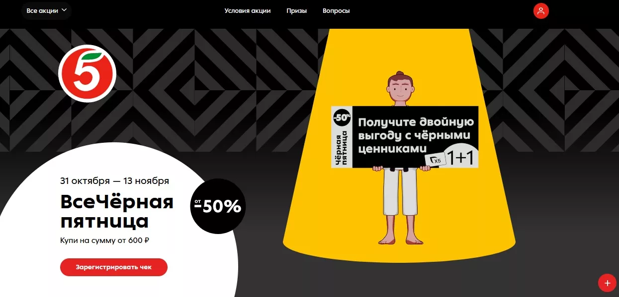 31 октября во всех магазинах сети «Пятёрочка» началась акция «ВсеЧёрная Пятница». Она продлится до 13 ноября. Что можно выгодно купить, как найти максимальные скидки и выиграть баллы на бонусную карту?