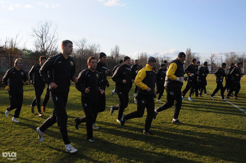 10 января футболисты "Кубани" провели на учебно-тренировочной базе клуба вторую тренировку в новом году. Наблюдать за послепраздничными маневрами "желто-зеленых" на этот раз прибыли сразу две съемочные группы местных телеканалов и журналисты портала ЮГА.ру.
