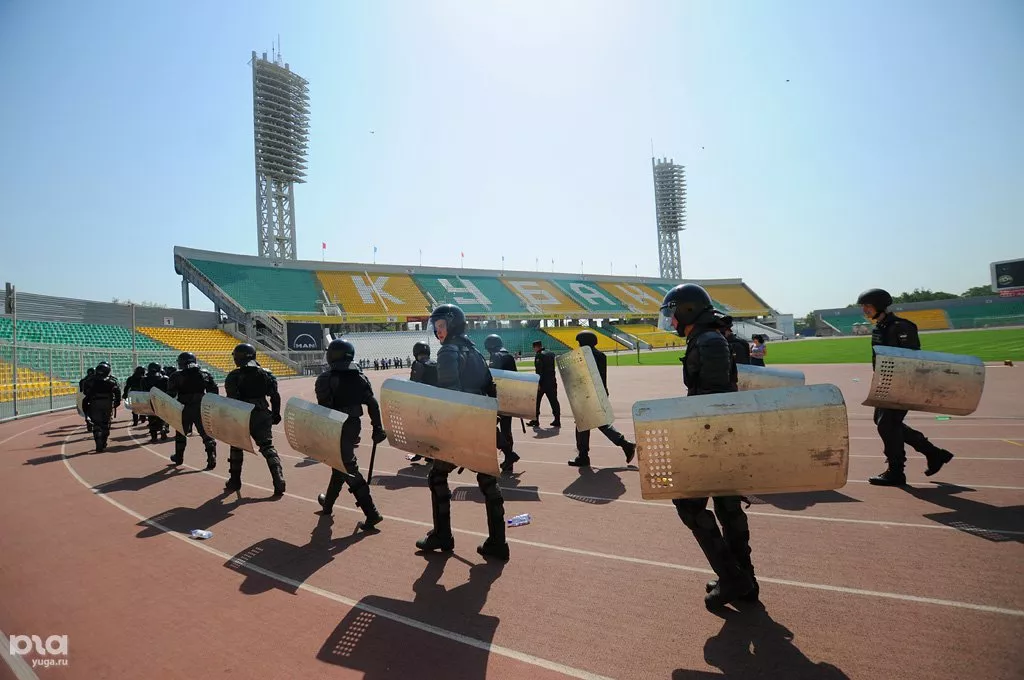 В Краснодаре ОМОН на учениях "обезвредил" буйных фанатов (фоторепортаж)