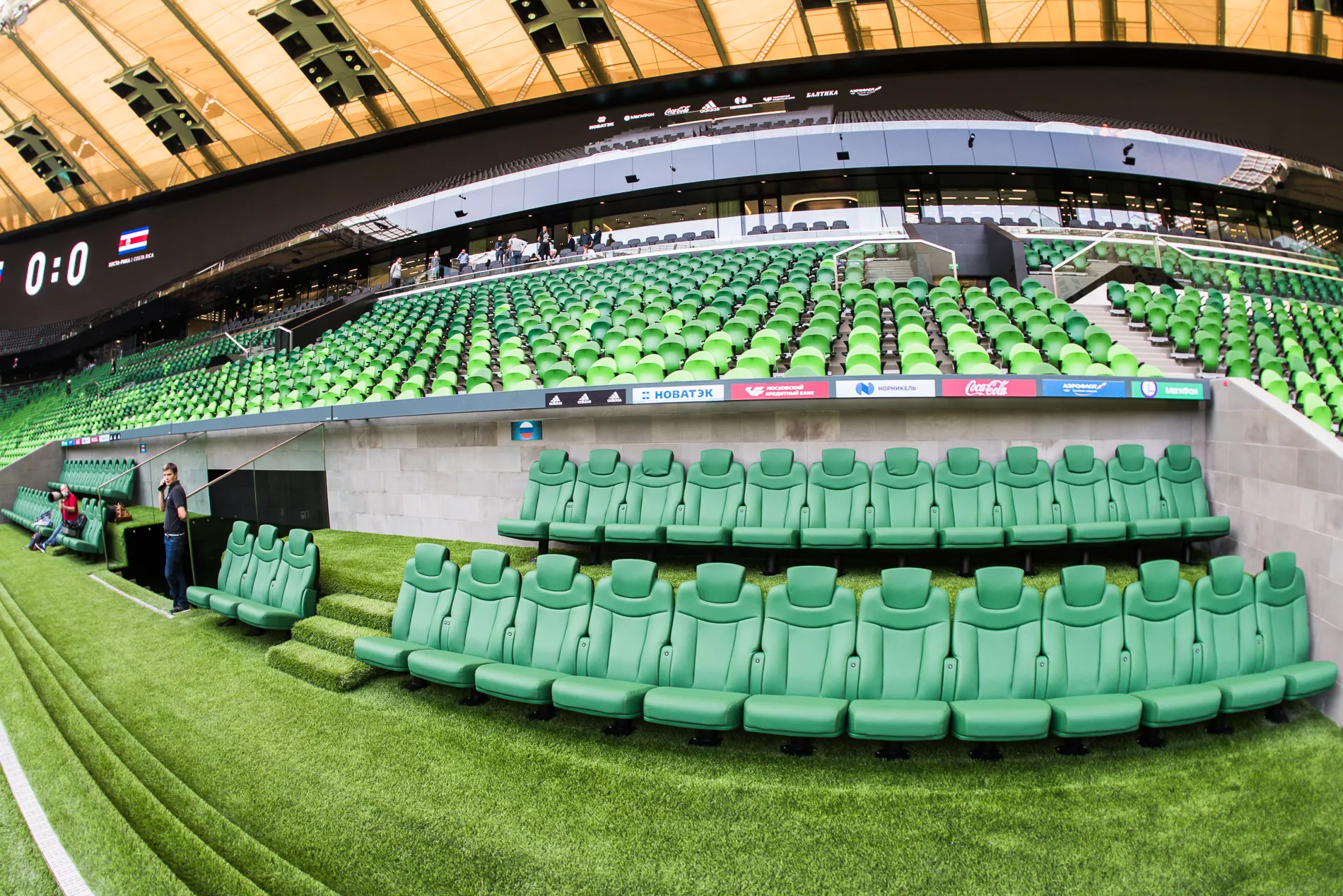 Трибуны краснодарского "колизея" рассчитаны на 34 291 зрителя. Места оборудованы комфортабельными индивидуальными сиденьями