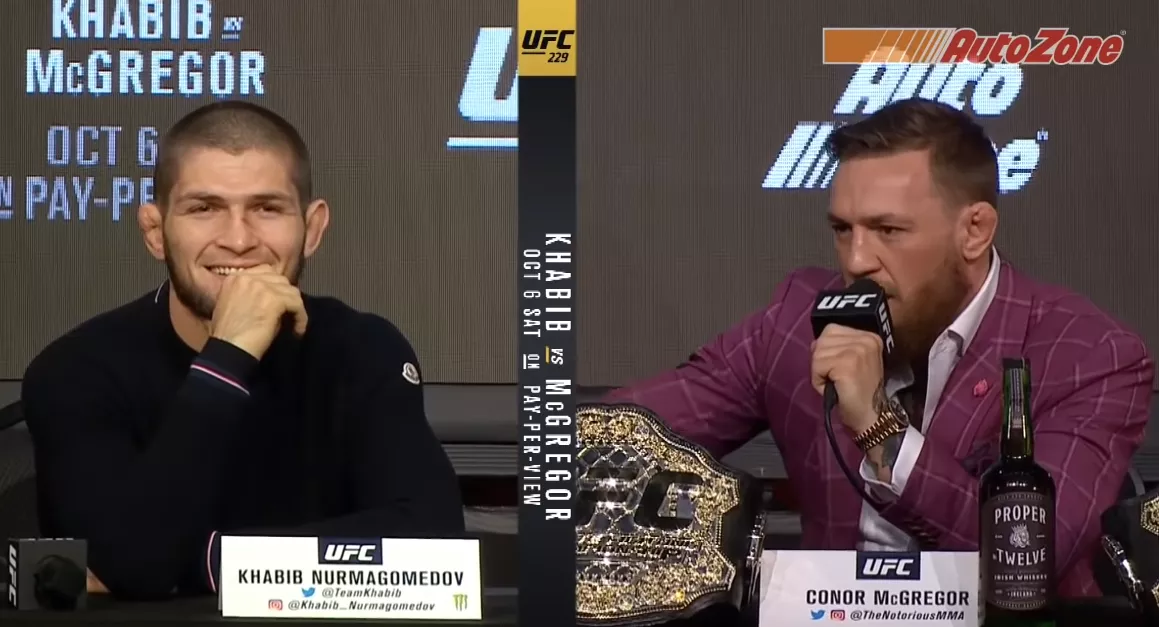 Предматчевая конференция Нурмагомедова и МакГрегора состоялась 20 сентября в Нью-Йорке. Ирландец, как обычно, оскорблял соперника, шутил, не стесняясь в выражениях, а также рекламировал собственный бренд виски. Он предложил Хабибу выпить, но тот отказался.