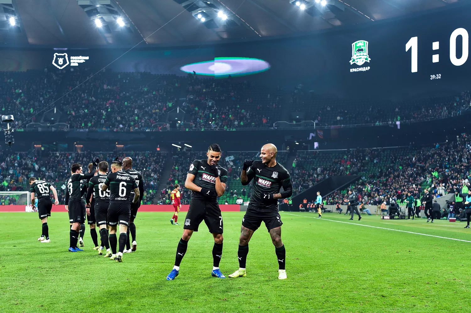 Второй гол был забит «быками» очень вовремя — чтобы снять у соперника все иллюзии по поводу результата матча. Здесь следует отметить Ари. Не показавший ничего особенного в двух играх за сборную, русский бразилец, вернувшись в клуб, сыграл исключительно полезно. Волею выбранного Мурадом Мусаевым состава он оказался в позиции не то атакующего полузащитника, не то оттянутого форварда. И задачи, перед собой стоящие, выполнил на 100%. В позиционных атаках Ари успевал наполнить переднюю линию нападения, участвовал в розыгрыше мяча. В быстрой контратаке он мгновенно определился с продолжением на Игнатьева и выступил конструктором второго гола. Определенно, Ари, атакующий из глубины, — новый и свежий вариант построения игры для «Краснодара».