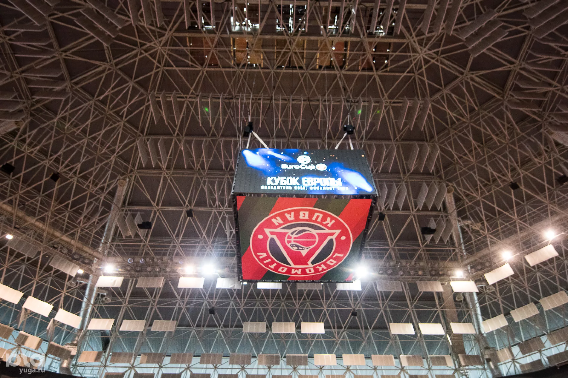 Над площадкой на специальных тросах подвешен видеокуб со сторонами размером 4,6 на 2,6 метра. Технические возможности куба позволяют транслировать по нему графику и видео в формате HD. С помощью специальных двигателей он может подниматься к потолку или опускаться ближе к площадке. Со следующего сезона иметь такой куб на арене будет обязана каждая баскетбольная команда, выступающая в Единой Лиге ВТБ. Краснодарский «Локо» решил не ждать начала нового года и поставил видеокуб уже в этом сезоне.