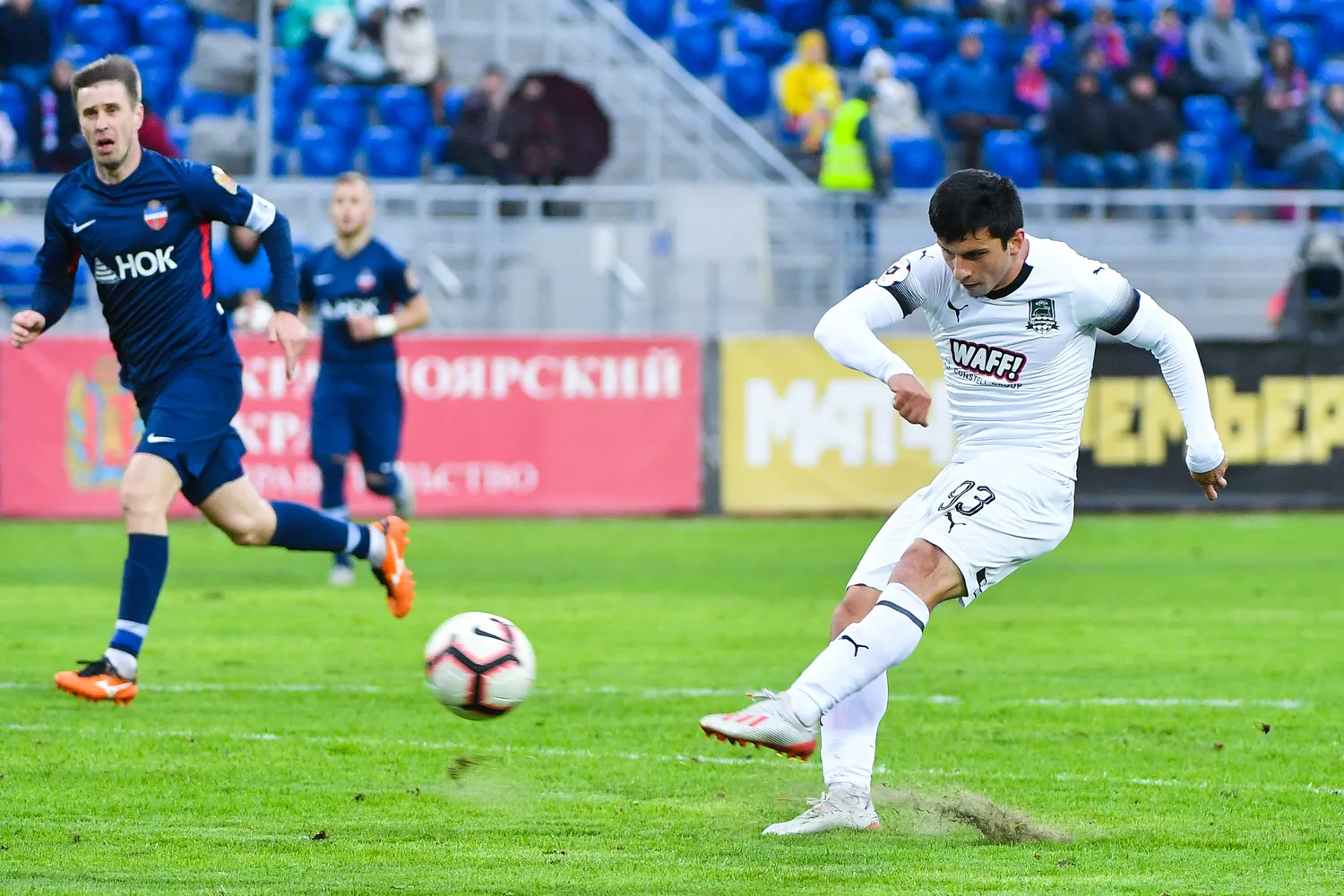 Голы «Краснодар» забивал на любой вкус. Классон смачно попал с правой в ближний угол, Газинский реализовал выход «один в ноль», Игнатьев идеально исполнил центрфорварда, а Магомед-Шапи Сулейманов привычно неожиданно и точно пробил с дистанции.