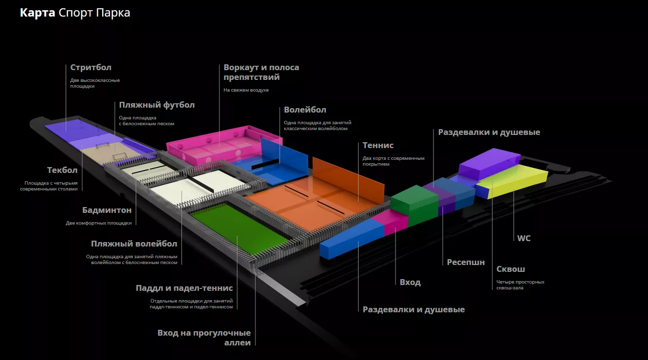 - посещать площадки для командных видов спорта можно группам: пляжный футбол от 8 человек, пляжный волейбол от 4 человек, классический волейбол от 10 человек.