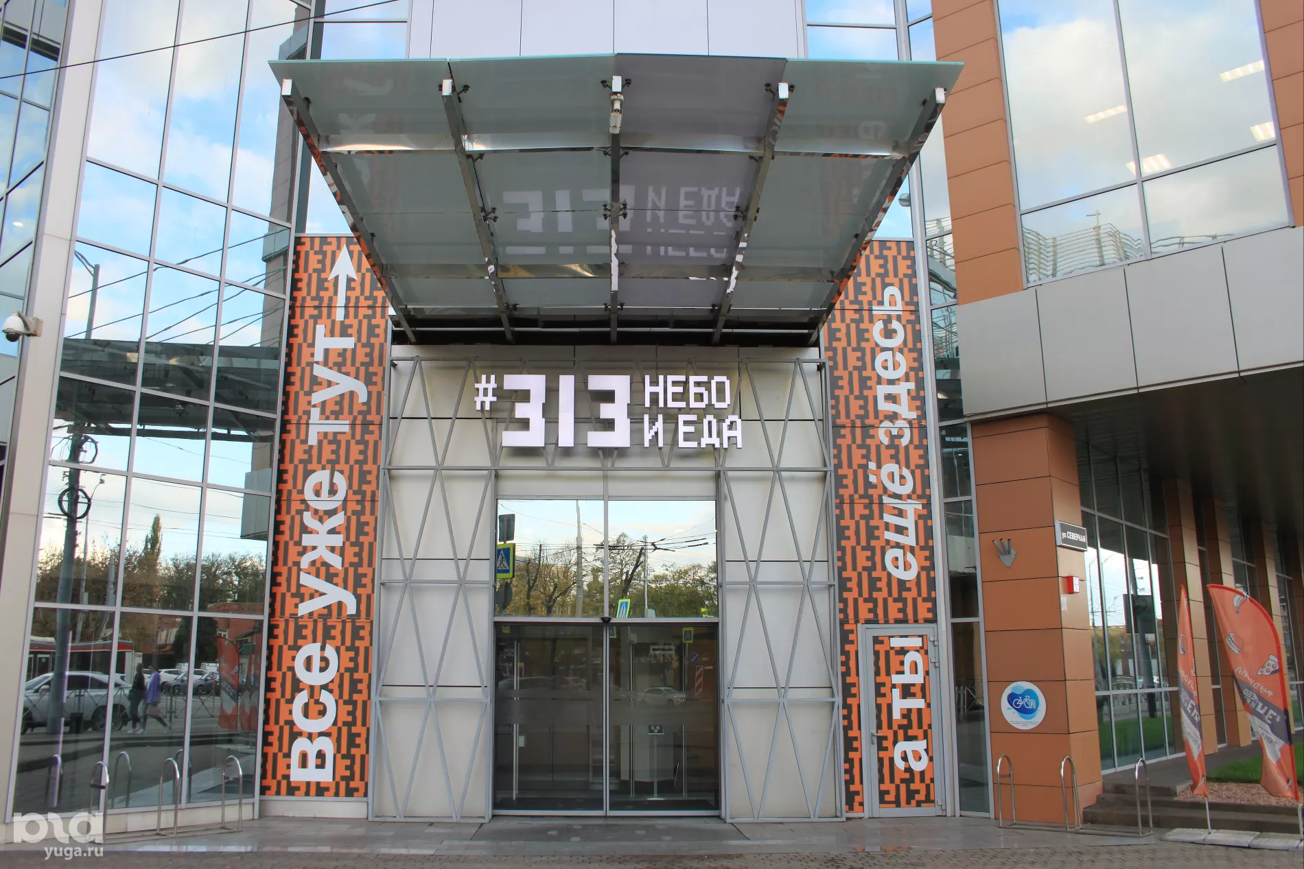 Фудхолл с панорамным видом на улицу Северную открылся в феврале 2023 года на третьем этаже второй очереди ТРЦ «Галерея-Краснодар». Название пространства сообщает сразу три факта: номер здания («313»), наличие большого стеклянного потолка («небо») и, собственно, того, ради чего все здесь собрались, — «еды».