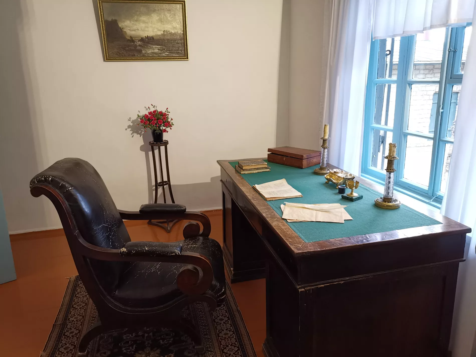 Раз уж мы начали с горы Машук, представим, что вы спустились в город по канатной дороге, и пойдем на прогулку от нижней канатной станции. Первая локация — дом Михаила Юрьевича Лермонтова. До него пешком примерно 10 минут, около 700 метров.