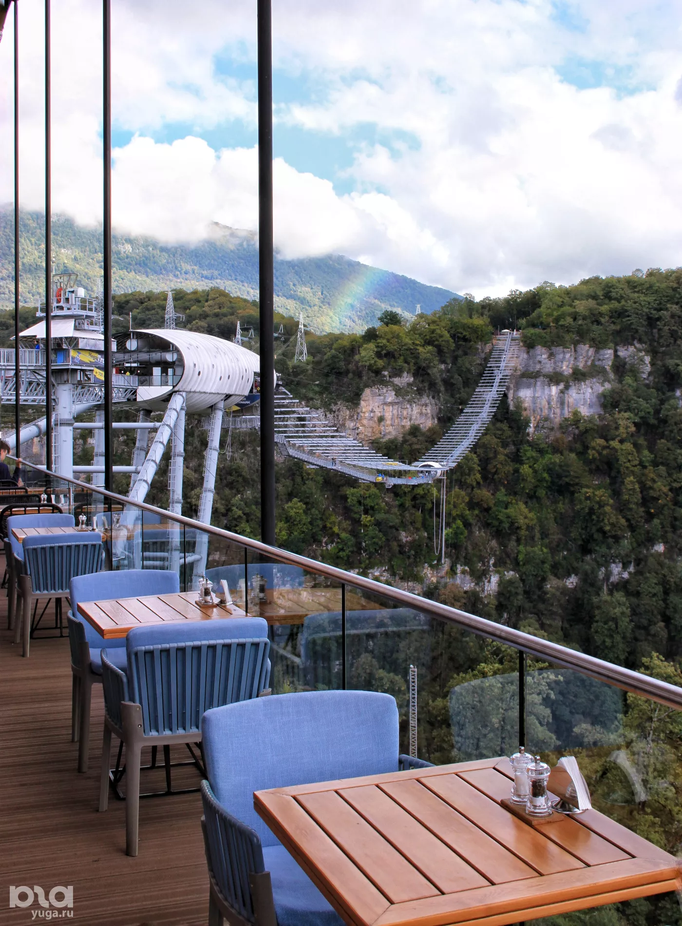 3. Подвесной мост и ресторан с видом на форелевое хозяйство в «Скайпарке»