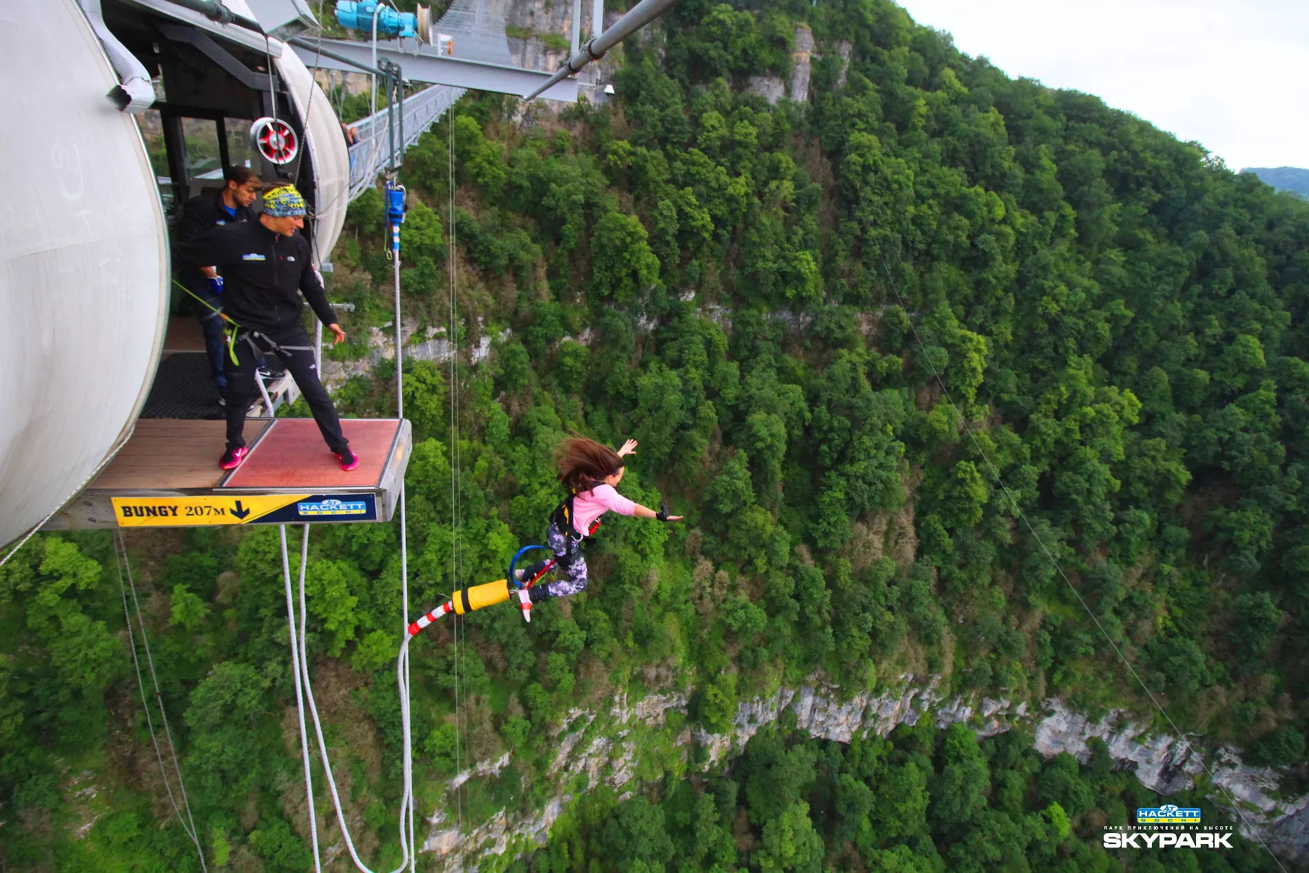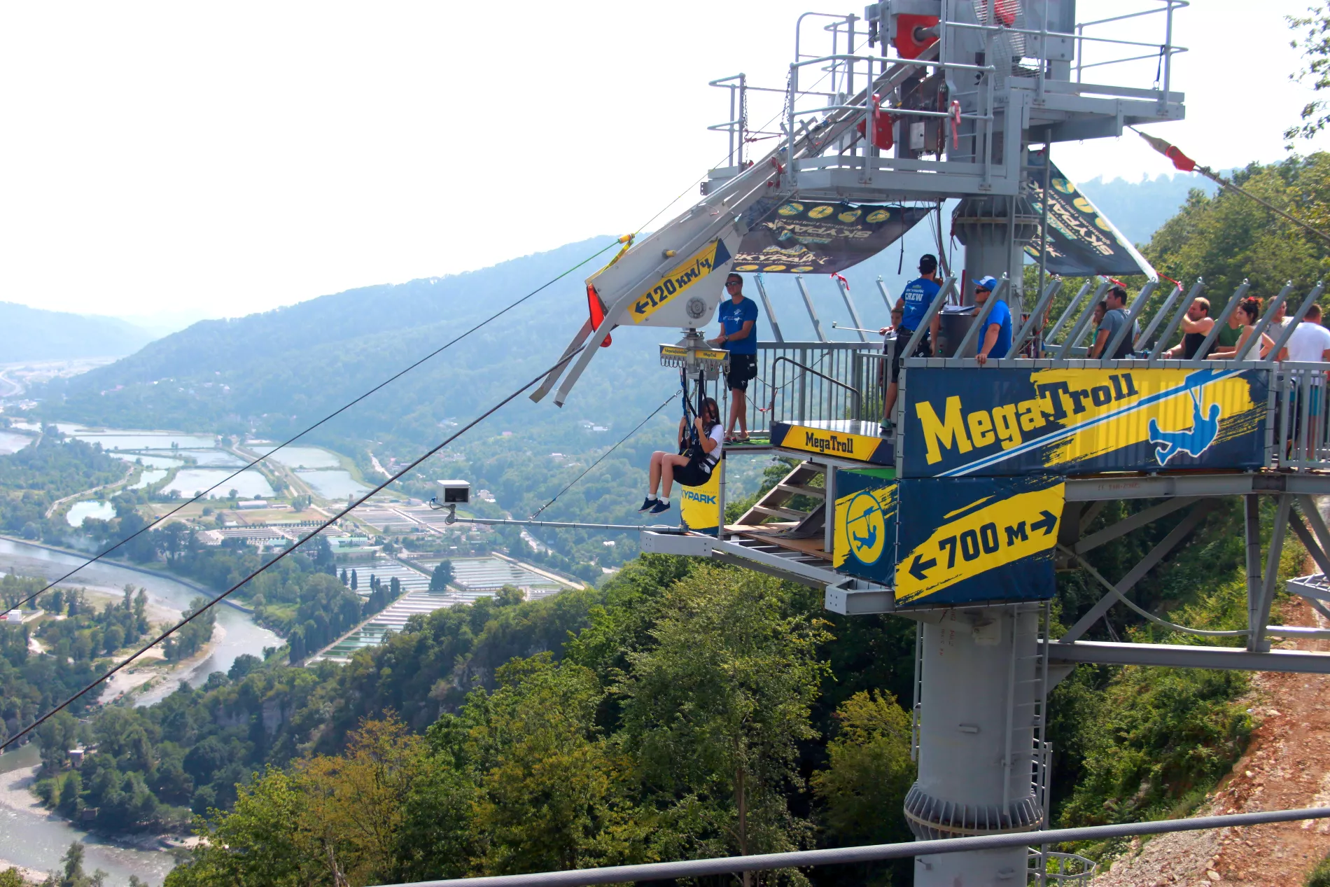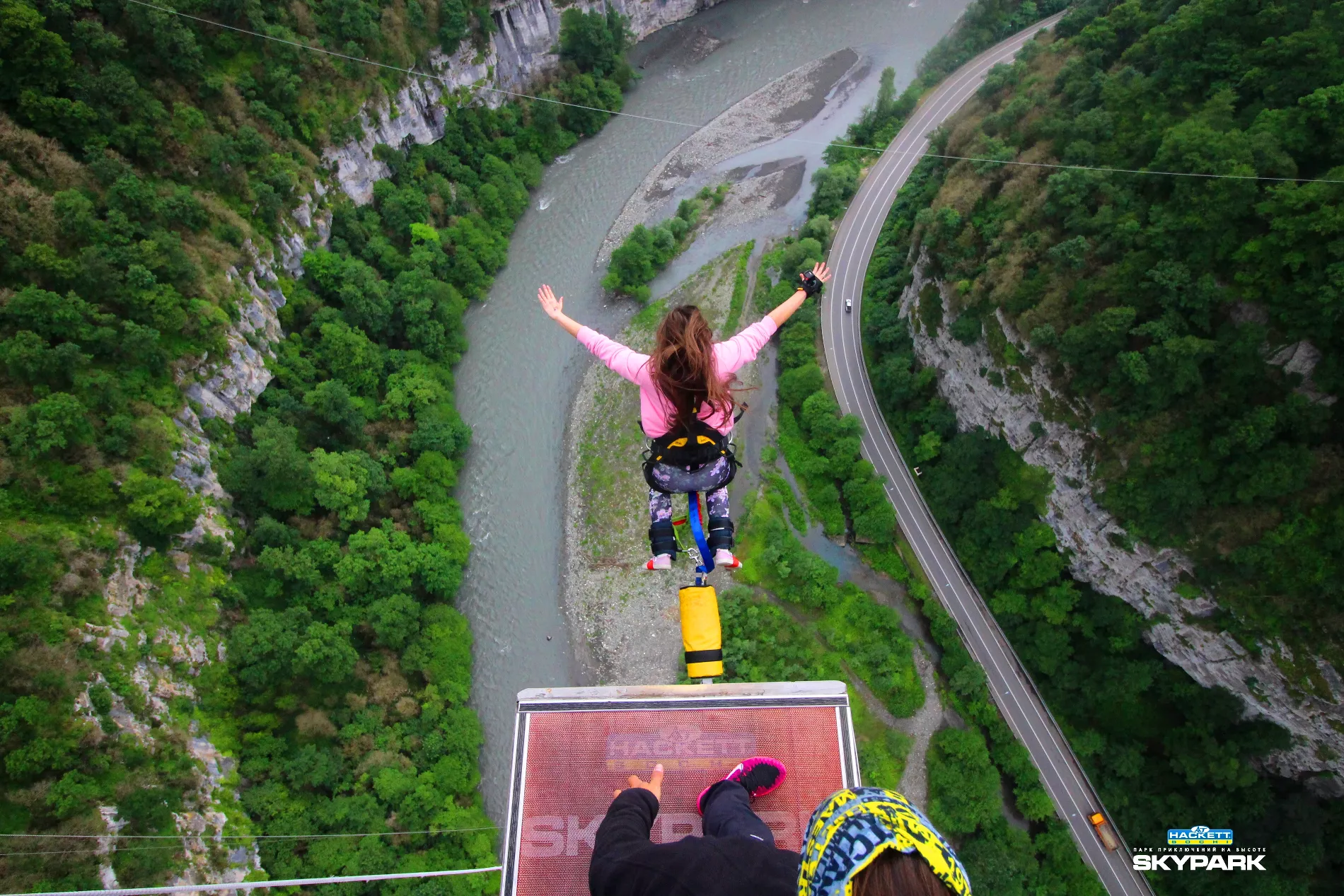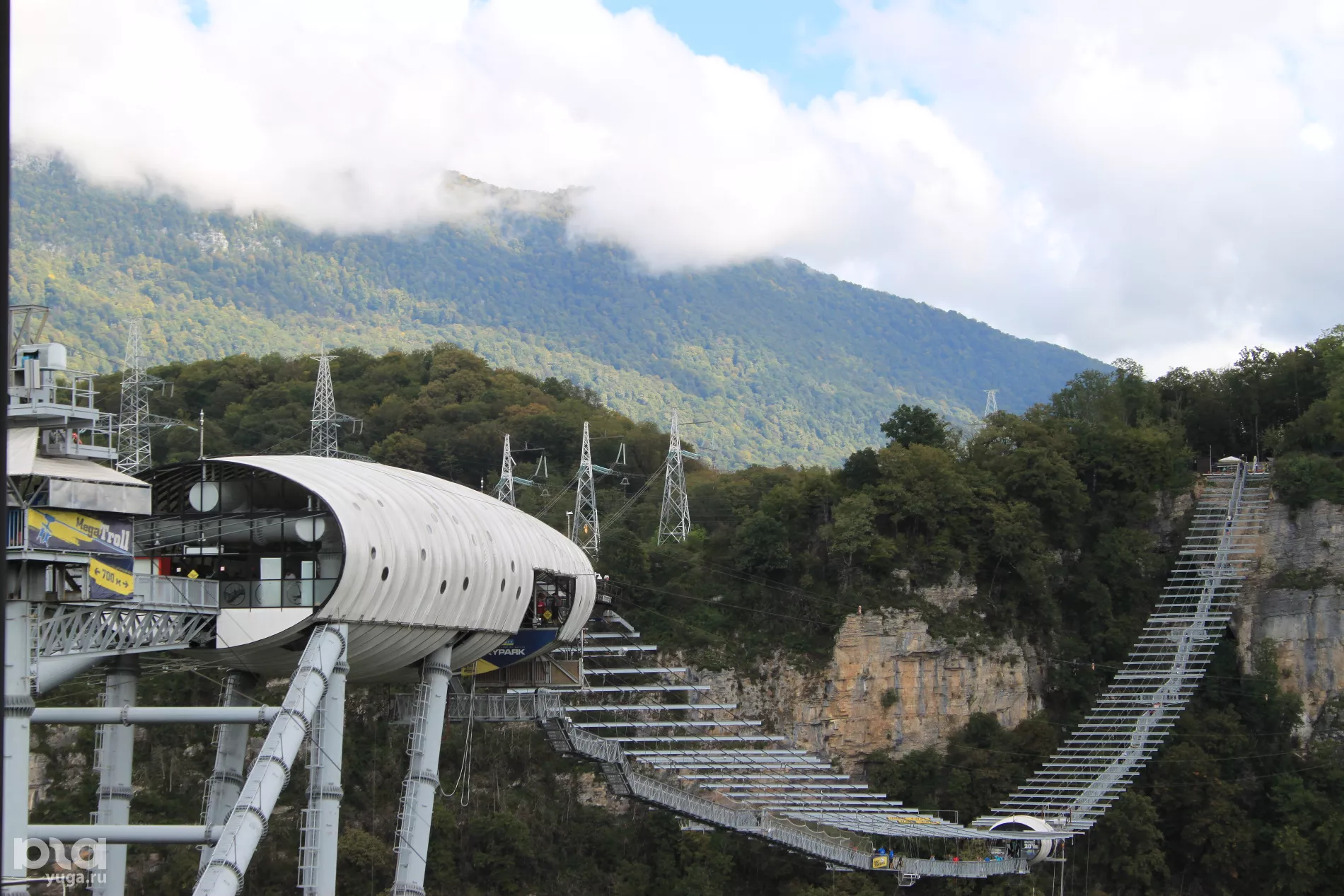 Сюда едут, чтобы прыгнуть с тарзанкой и прогуляться по самому протяженному подвесному пешеходному мосту в стране — он соединяет два склона Ахштырского ущелья на высоте больше 200 метров. По пути от одного конца до другого есть две площадки для прыжков с эластичной веревкой — банджи-джампинга — высотой 69 и 207 метров. Здесь можно посмотреть, как посетители готовятся к прыжку, поддержать их и заодно понять, хотите ли вы это повторить.
