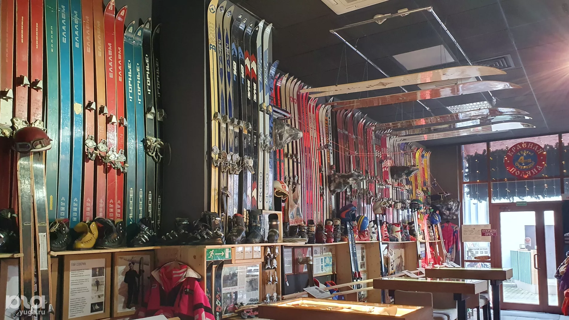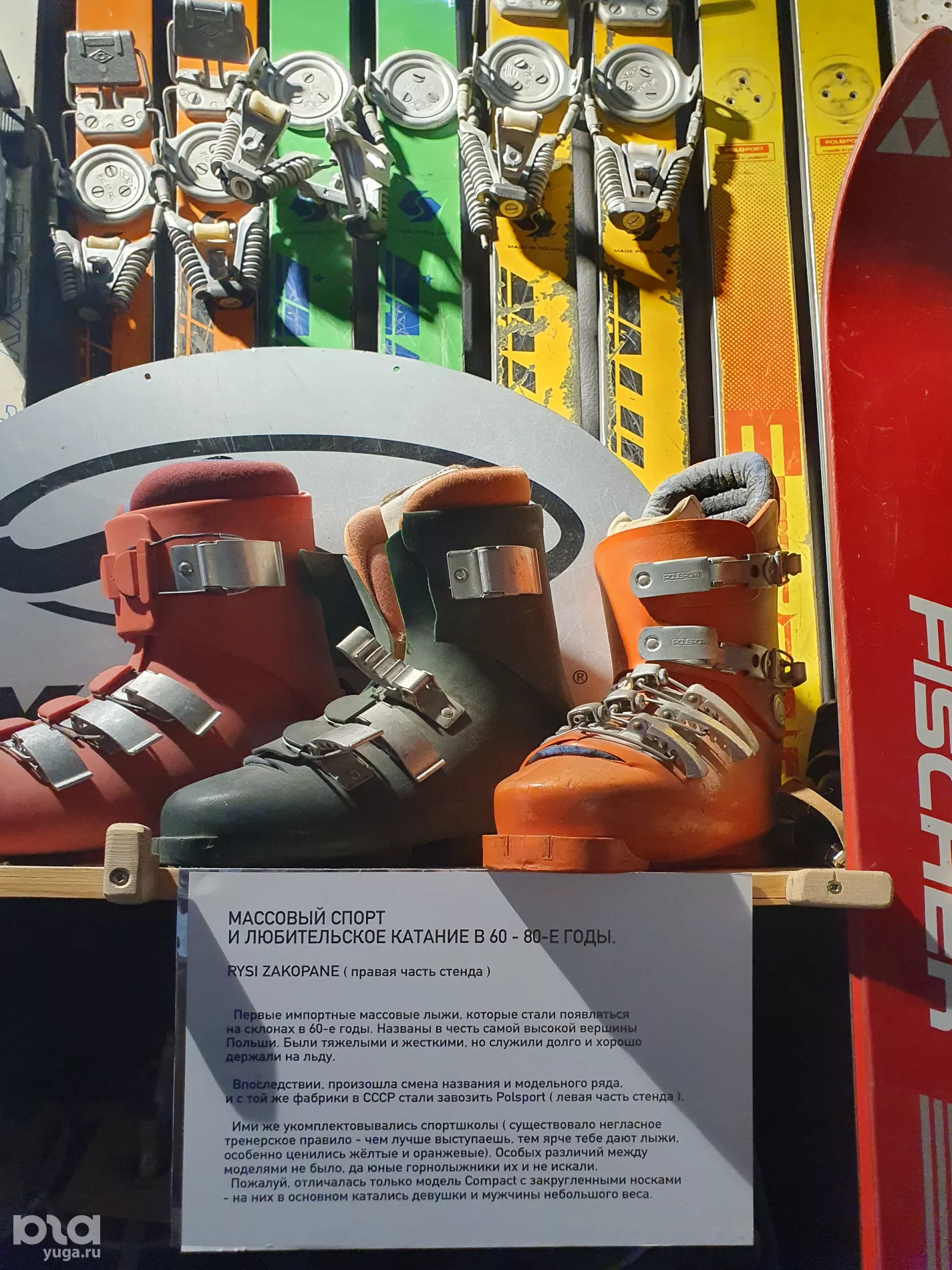 Здесь лыжи и сноуборды, нагрудные номера и ботинки не стоят за стеклянными витринами, а украшают стены и потолок. Некоторое горнолыжное оборудование принадлежало легендарным советским спортсменам, например, стартовые лыжи Александра Филатова, 23-кратного чемпиона СССР, и Александра Жирова, победителя 4 этапов Кубка мира.