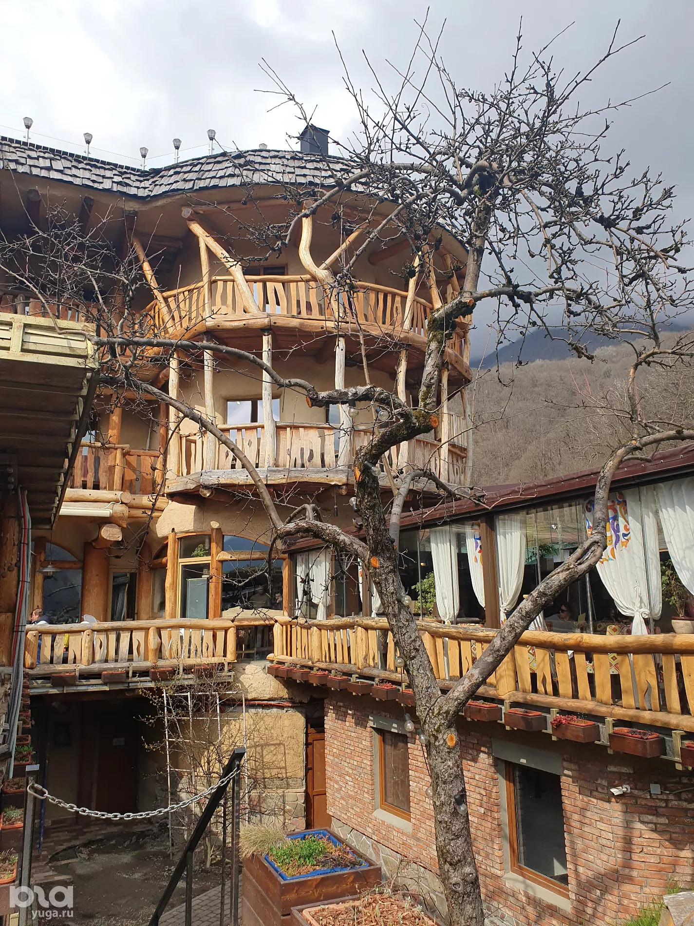 Ресторан Геры Митрош открылся в 2019 году на месте небольшого кафе с саманным домом и баней. Последняя находится в двух шагах от входа в ресторан, и это тоже одна из самых фотогеничных местных локаций — из-за бани-ежихи с видом на горы: