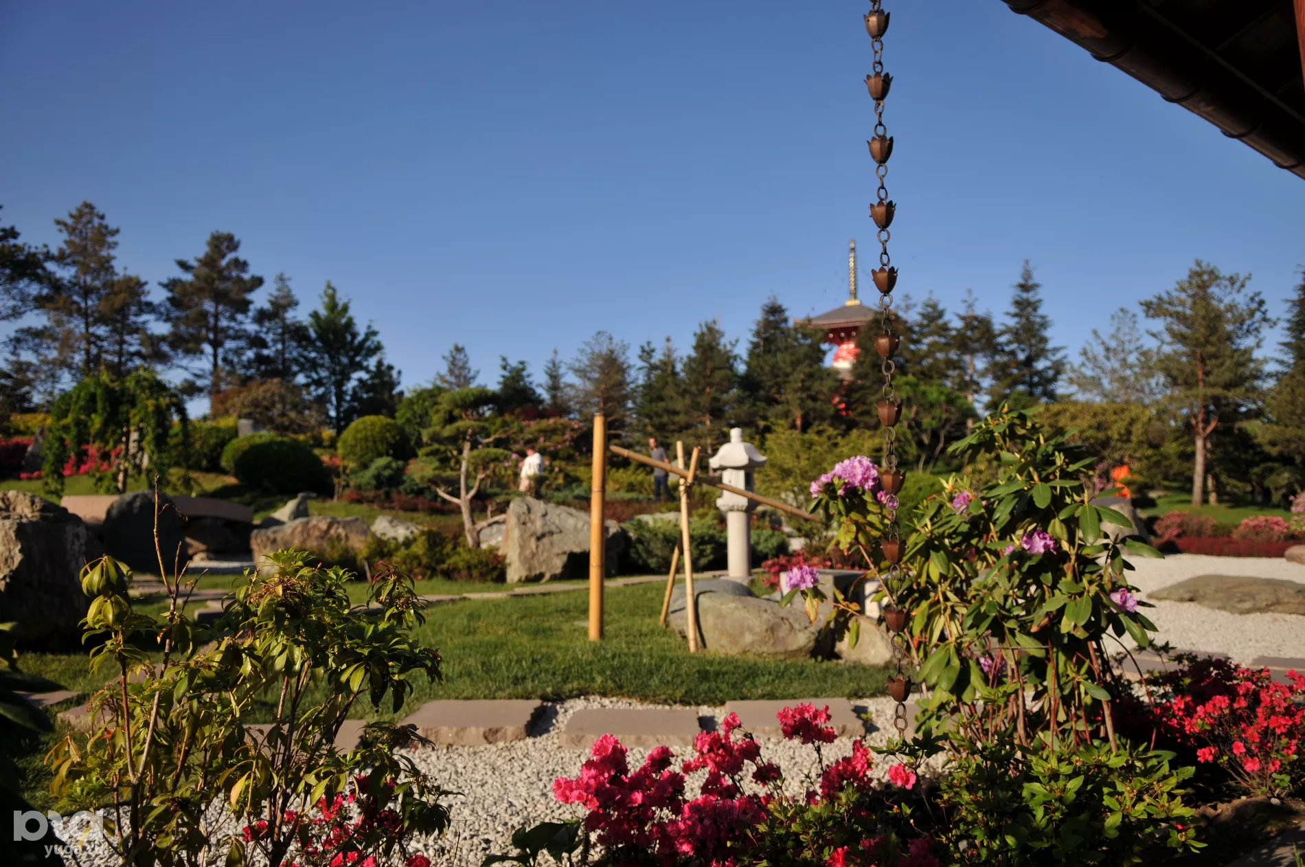 К концу весны самые эффектные цветения сосредоточились в восточной части Японского сада — вдоль правой стороны от входа.