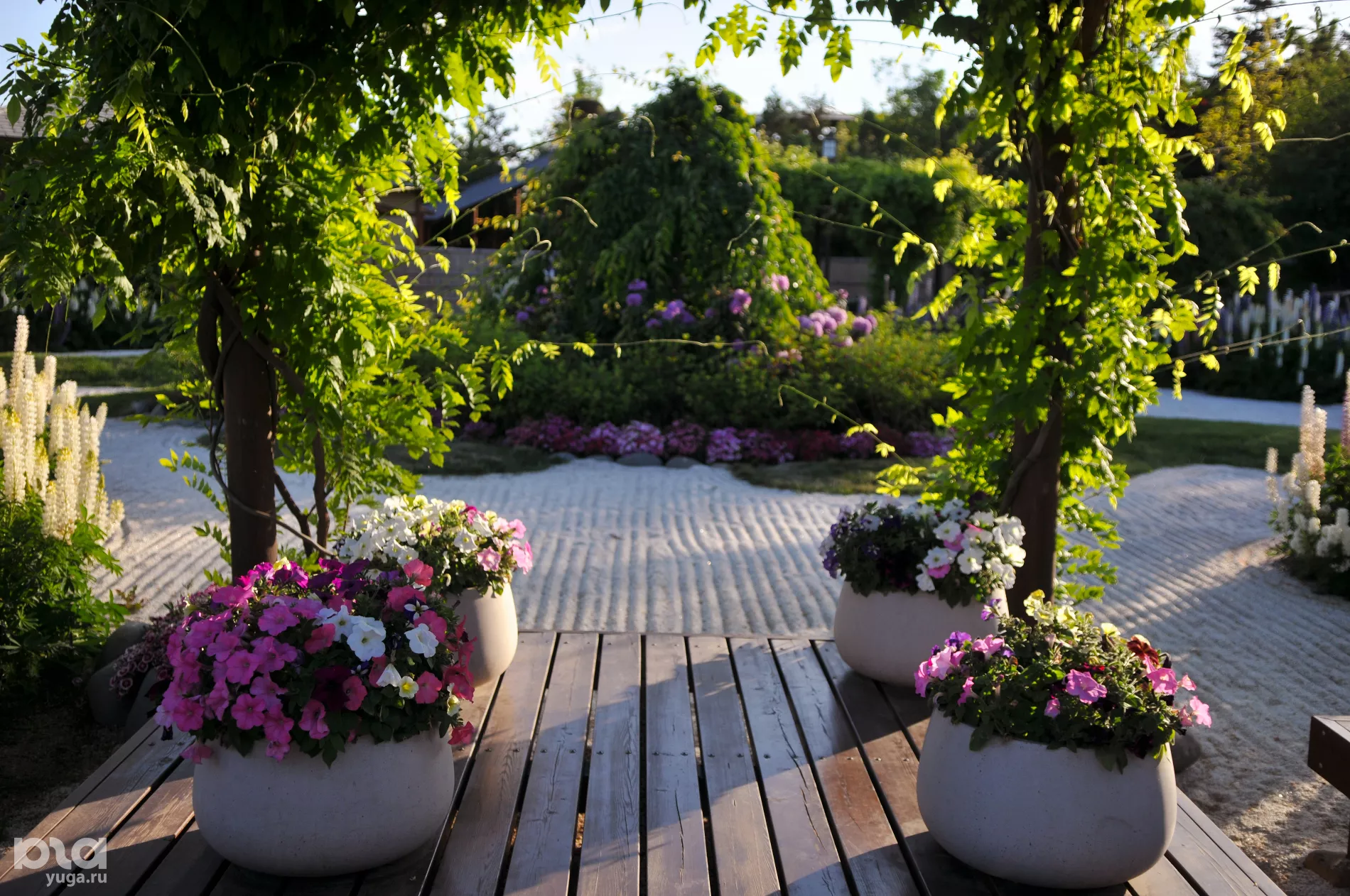 Внутренний двор коридоров Цубо-нива покрылся тысячами цветных «свечей» — второй год подряд здесь цветут люпины. В лучах контрового закатного света холмы выглядят особенно волшебными, потому самые впечатлительные спешат к ним прямо по «причесанной» песочной насыпи. Голос из колонок вежливо объясняет, что ходить здесь, как и в других локациях сада, стоит только по дорожке из больших камней.