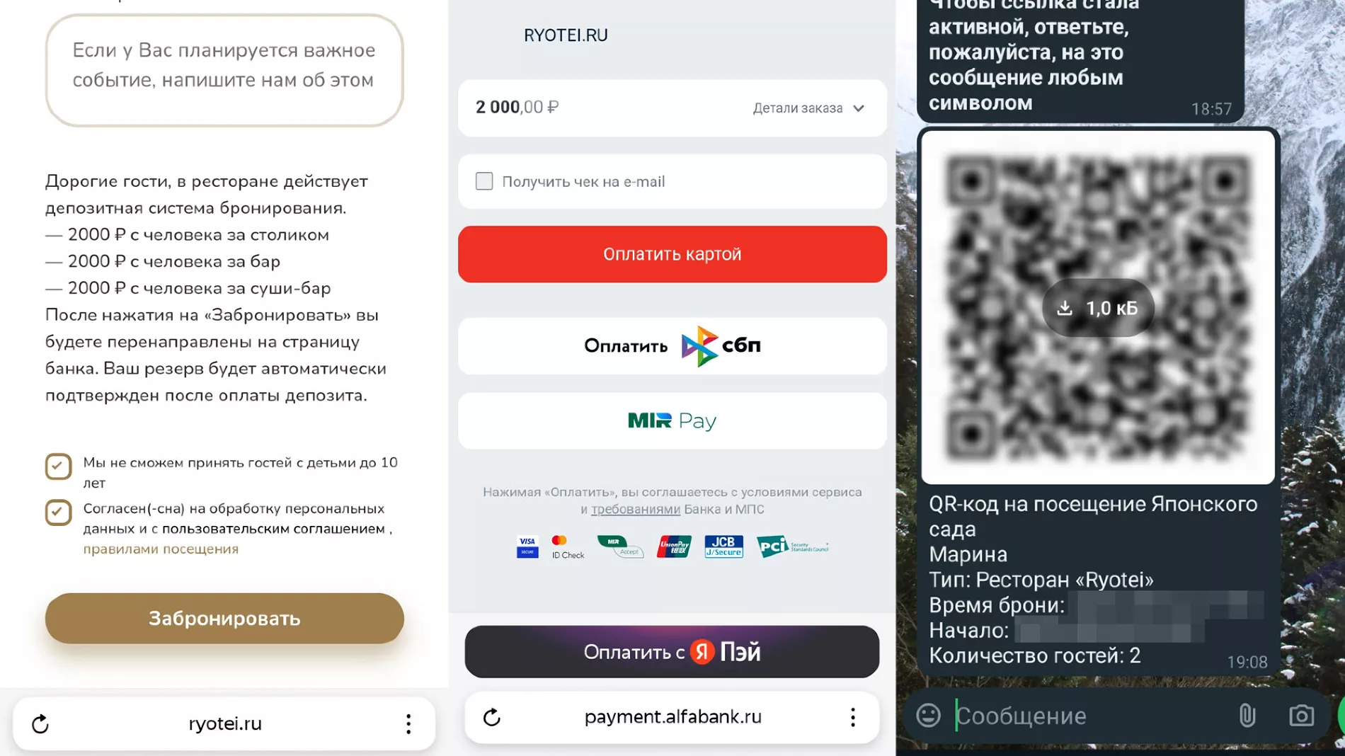 Да, это еще один способ гарантированно попасть в Японский сад. Всего их четыре, самый простой и бюджетный из них — с сертификатом в кофейню «Киссатен» — мы подробно описали здесь. Теперь разберемся, как получить QR-код для входа в Японский сад с помощью брони столика в ресторане «Рётэй».