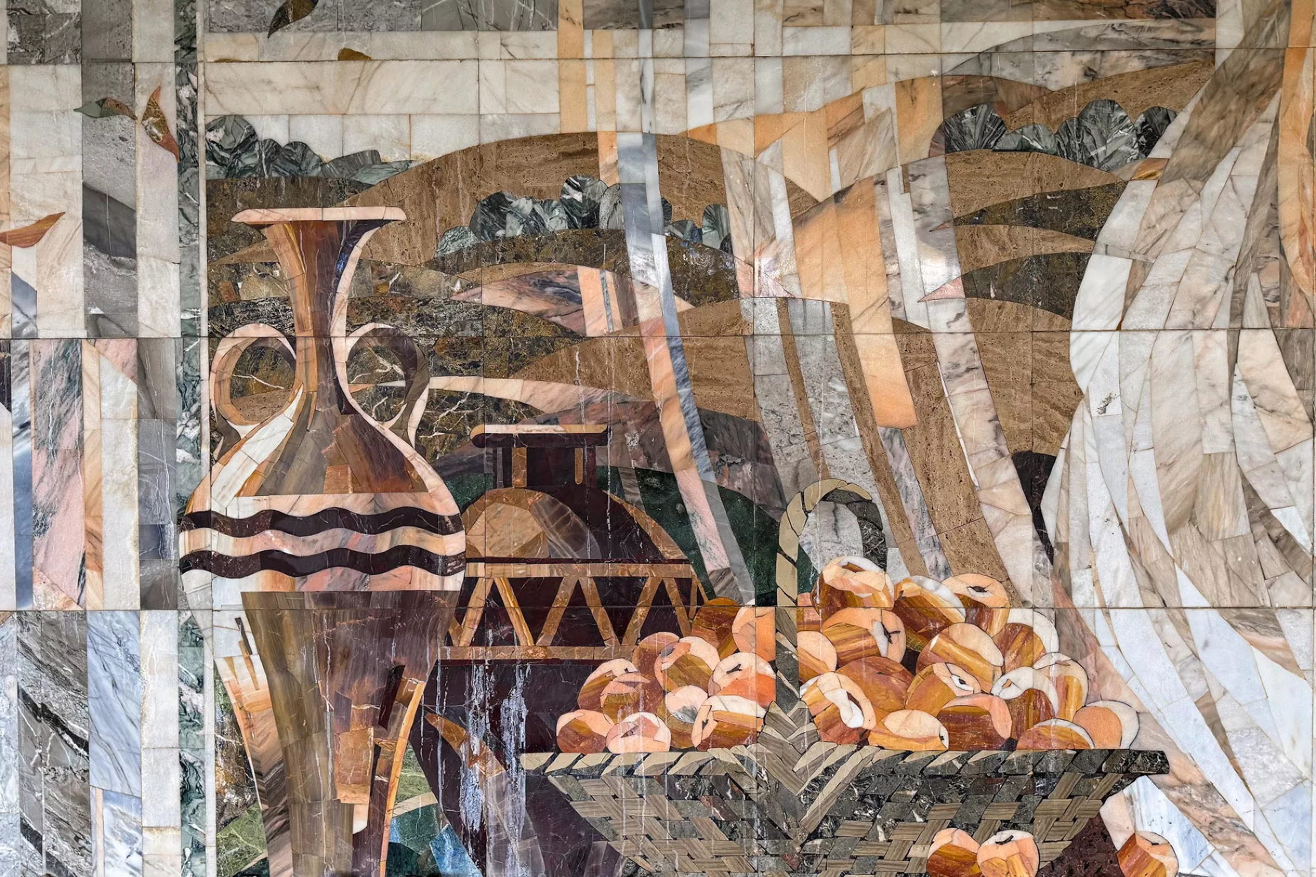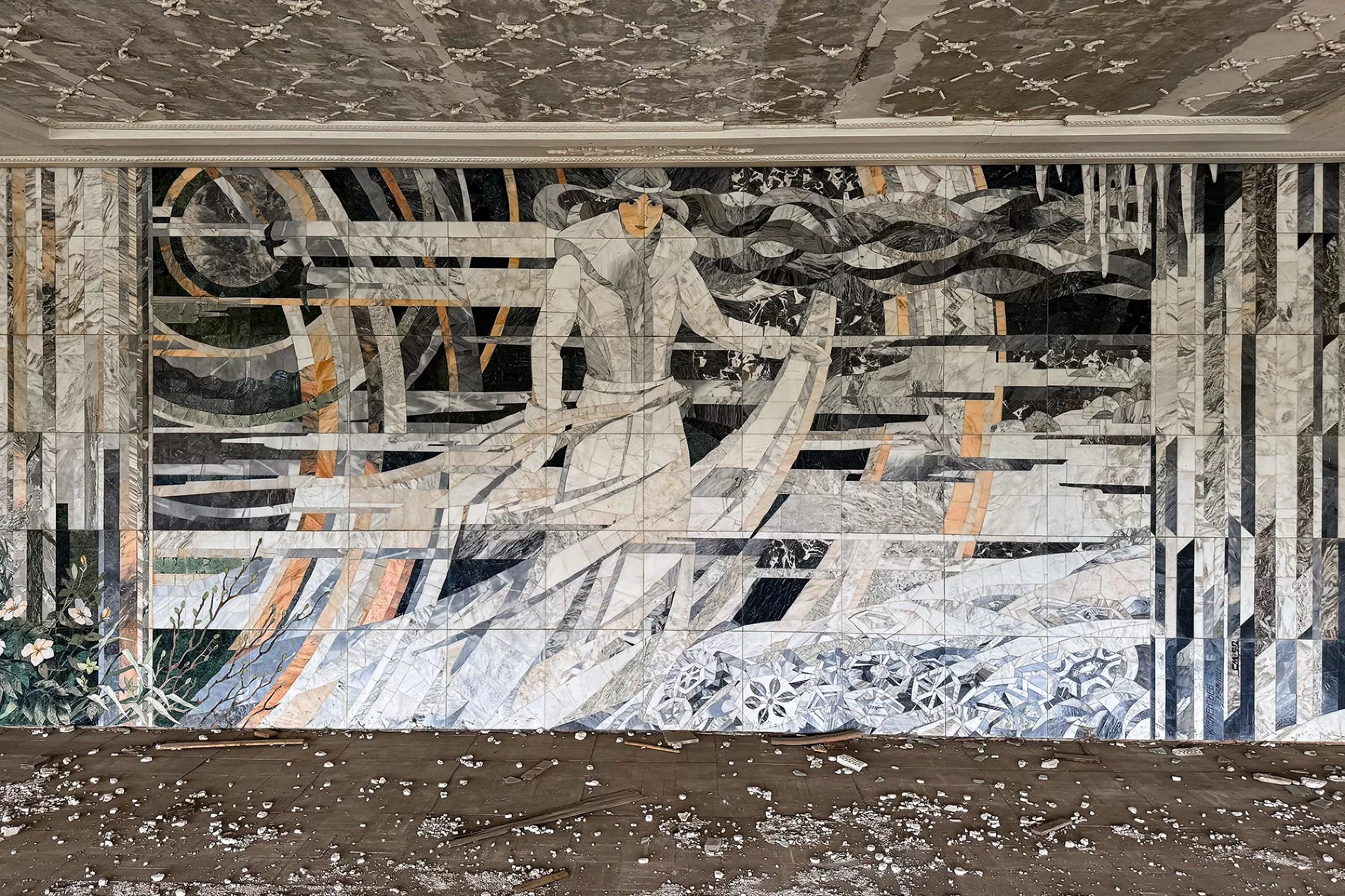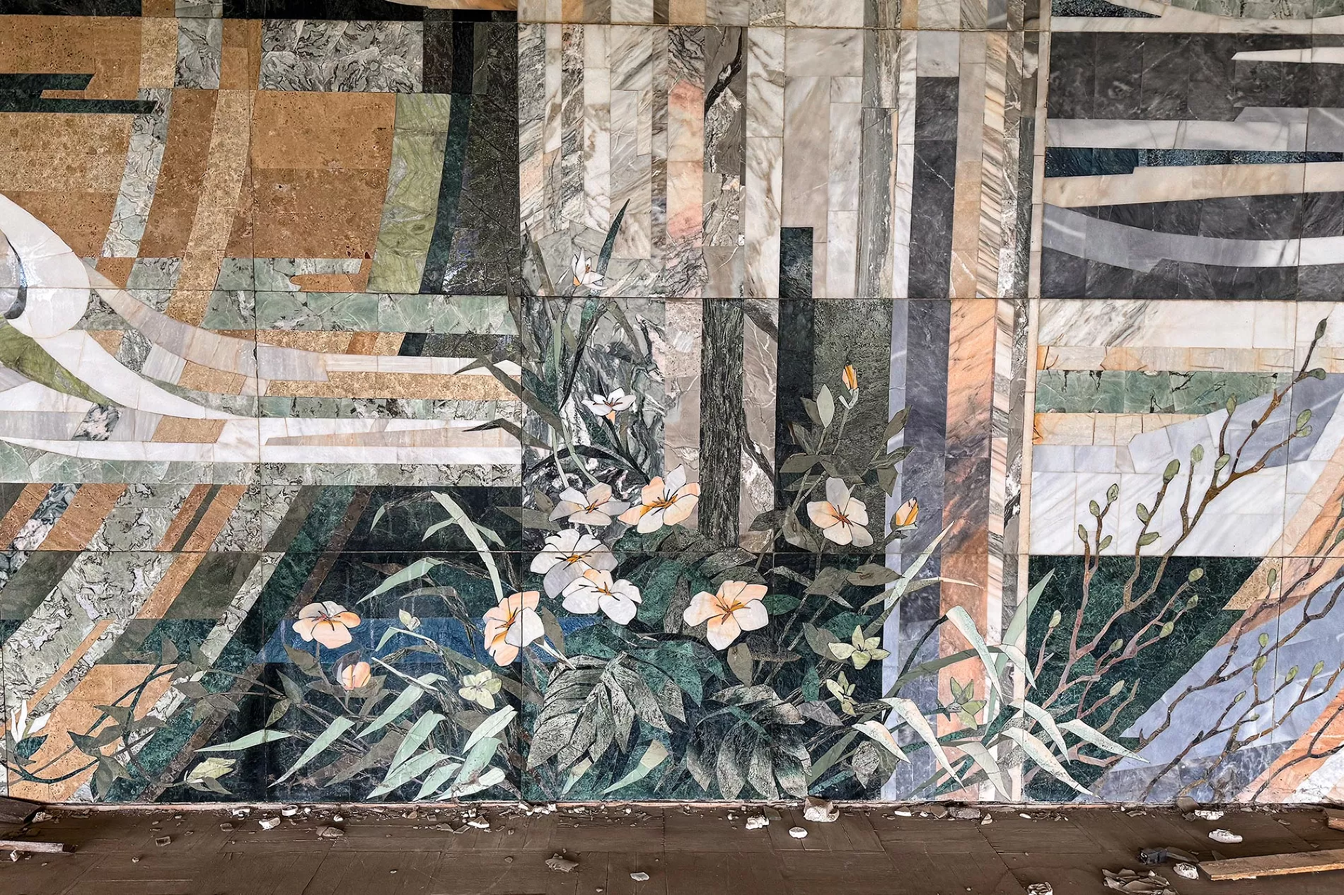 Но посреди этого увядания скрывается настоящее сокровище, которое время, кажется, не тронуло. Это великолепное мозаичное панно 1992 года, посвященное временам года. Глядя на него, я думала о том, что это удивительное произведение мастеров Лобанова, Клементьева и Карлова теперь могут оценить лишь редкие гости. Позже я узнала, что судьба панно волнует не только меня: местные активисты ищут способ его спасти, демонтировать и перенести в безопасное место. Это дает надежду, что сокровище Новоберезанского не исчезнет бесследно.
