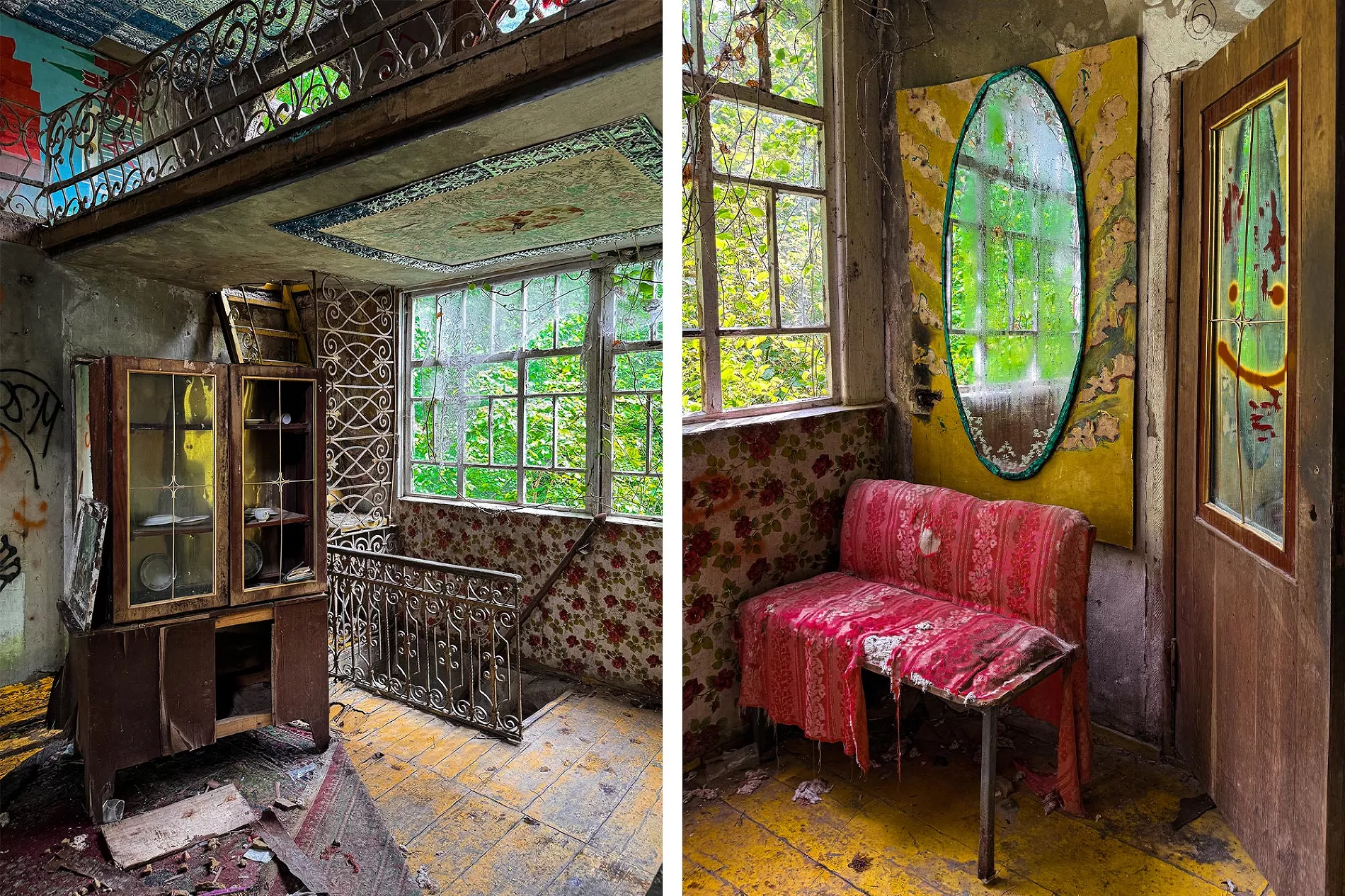 Совсем другой, жутковатой находкой стал заброшенный дом в Сочи, оставивший после себя лишь один вопрос: кем был его хозяин — творческим человеком или настоящим безумцем? Представьте себе: на крыше — купол, у входа — картина с тремя богатырями. А внутри — полный хаос и странные артефакты вроде икон, вставленных в рамки от старых телевизоров. Полы там проваливались, а мутный женский образ на одной из дверей заставил меня поежиться. Этот дом — наглядный пример локации, куда точно не стоит отправляться из-за аварийного состояния.
