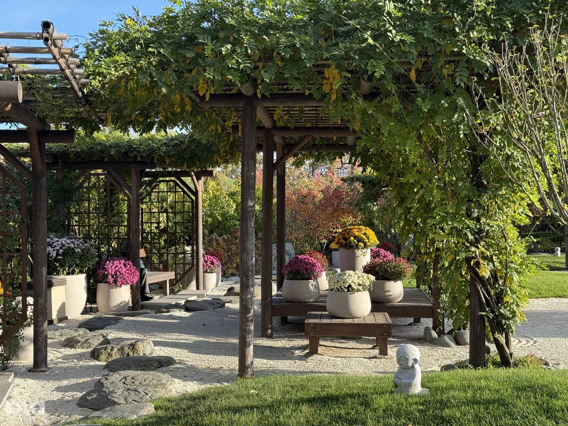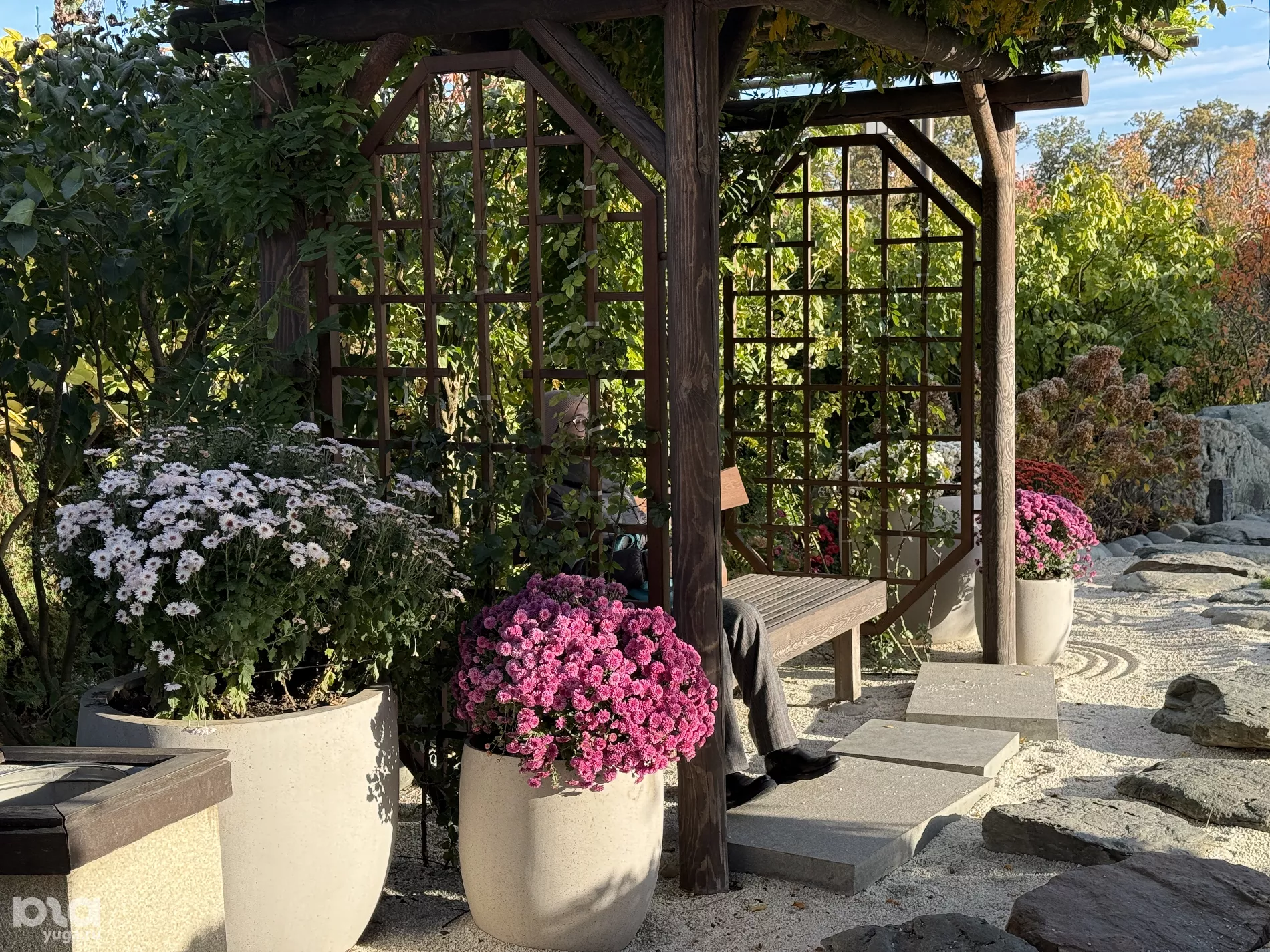 Один из самых укромных уголков Японского сада находится в его восточной части. Здесь, в садовых коридорах Цубонива кайро, японская эстетика перекликается с кубанской — беседки украшают пышные шапки дубков.