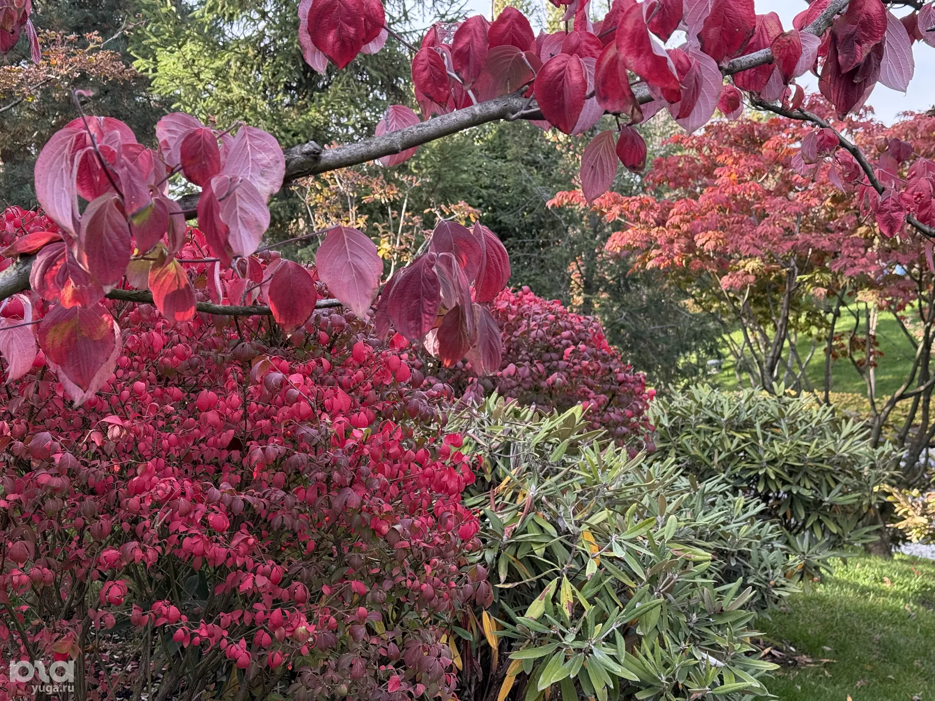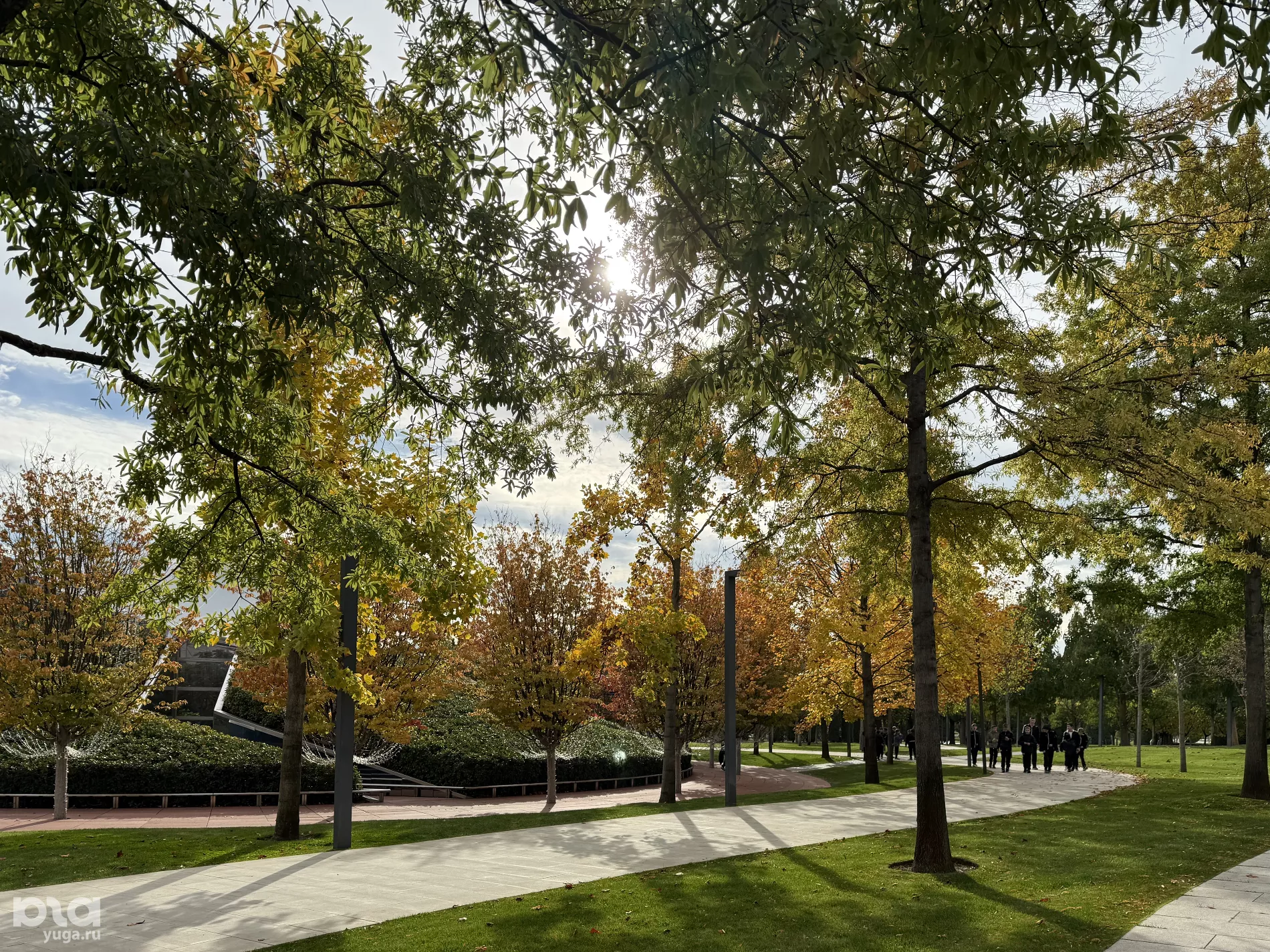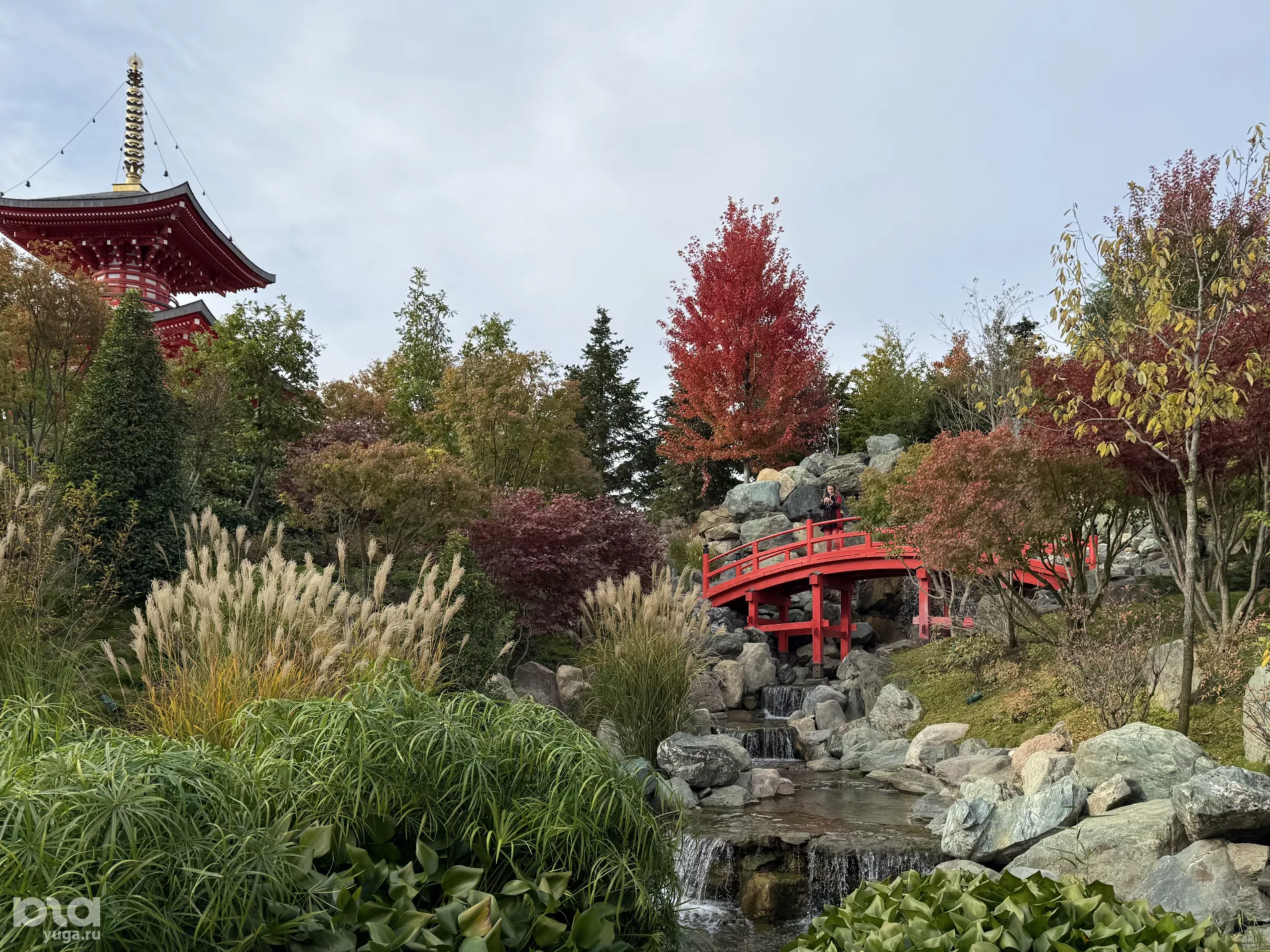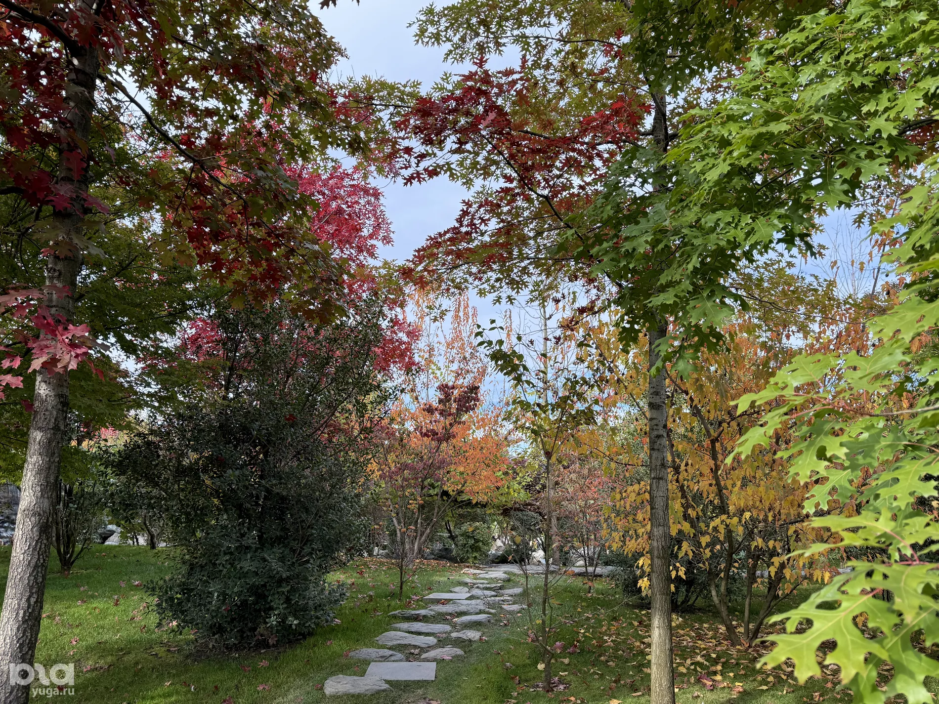 Уже на входе в Японский сад можно наконец понять всю суть момидзи. Красота природы заставляет тебя замереть и смотреть, как сквозь цветные листья-витражи пробиваются лучи солнца. И если кубанская осень в основном желтая, то сад встречает гостей буйством багрянца.