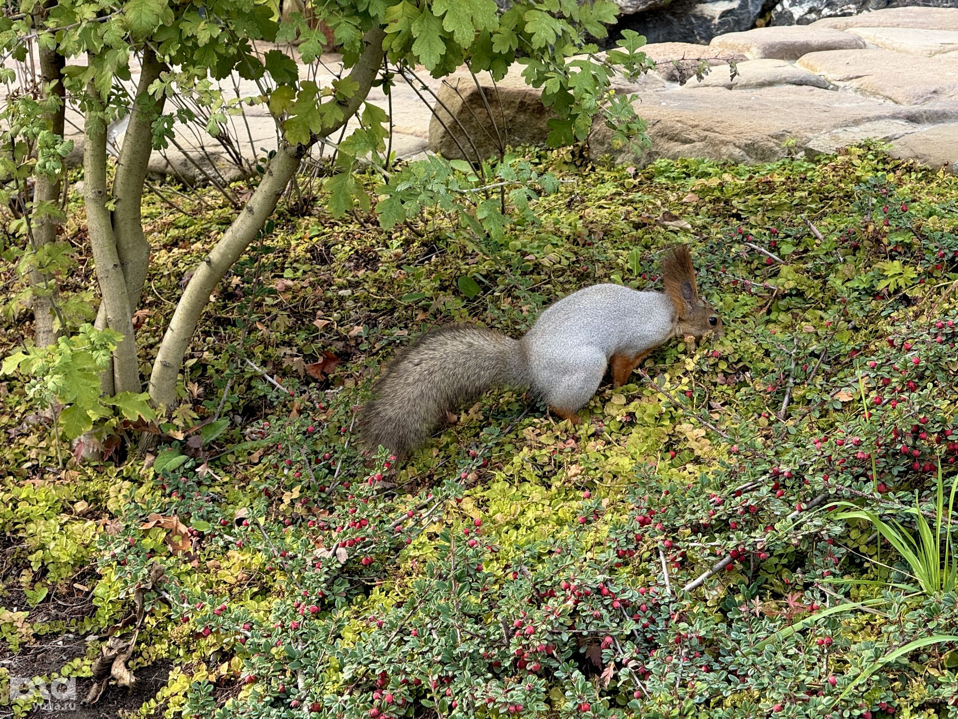 Новосибирские белки, поселившиеся в Японском саду почти два года назад, похоже, окончательно освоились и уже не стесняются прохожих. Хотя рука так и тянется их угостить, делать этого не стоит — о полезном рационе зверьков заботятся сотрудники парка.